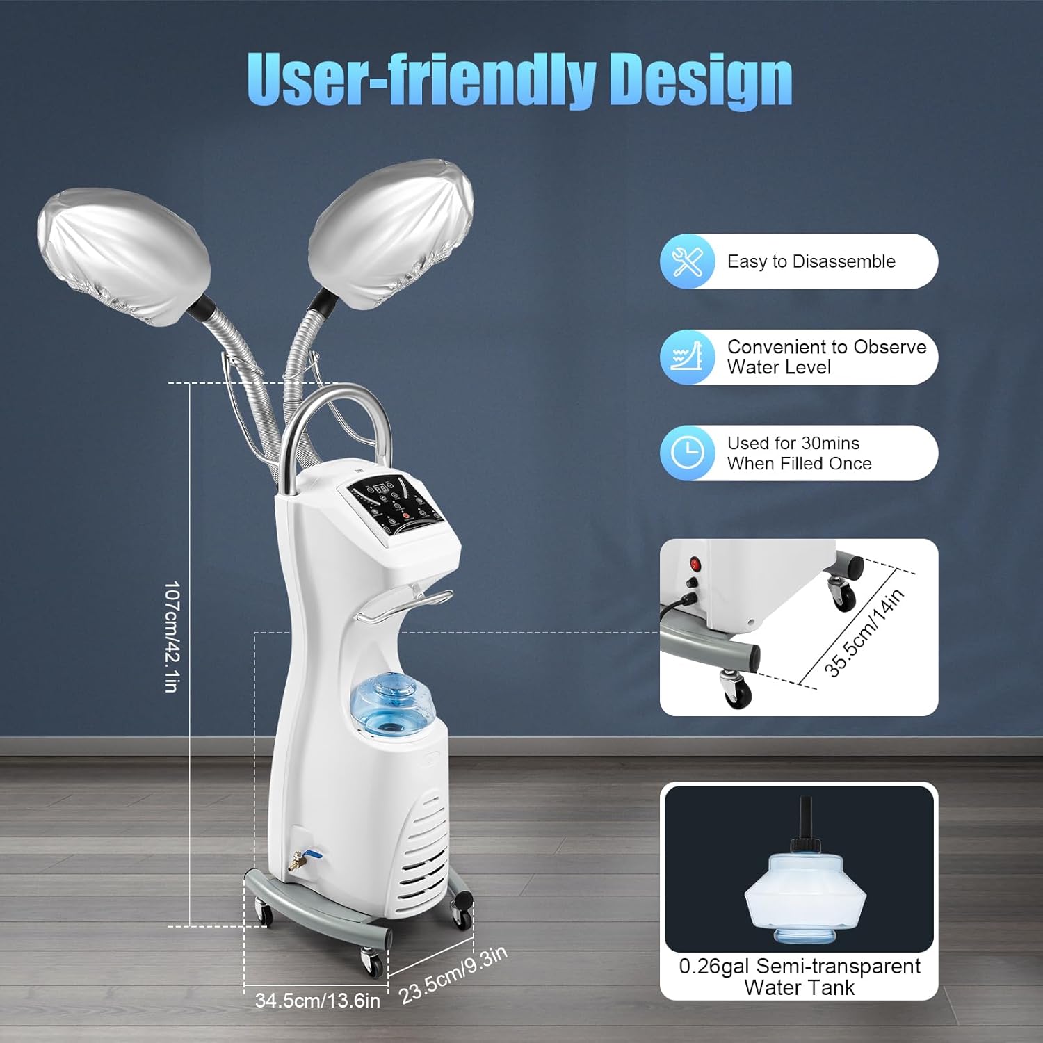 User-friendly Design: The standing hair dryer’s external water tank with a semi-transparent design is easy to disassemble and convenient to observe the water level at any time. Its 0.26gal capacity can be used for about 30 minutes when filled once, avoiding frequent water refilling, and saving time and effort.