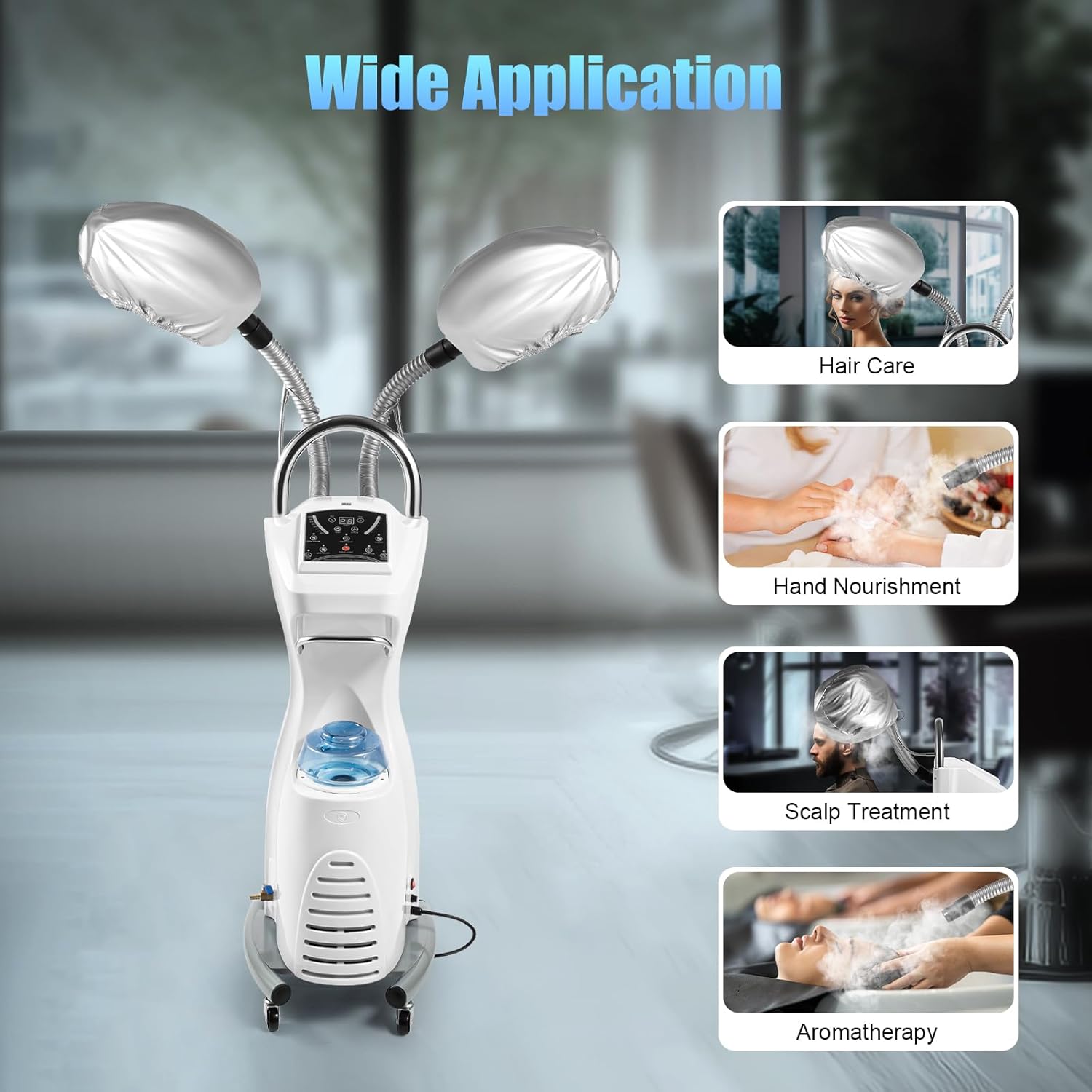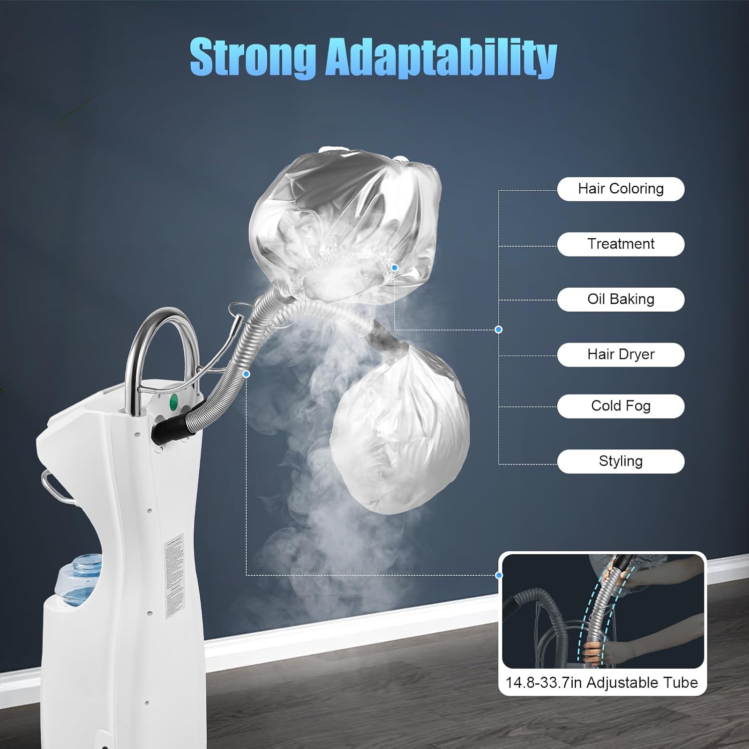7 in 1 Professional Stand Hair Steamer, 110v/60Hz Freestanding Rotating Salon Hair Dryer, Hooded Hair Treatment Salon SPA Machine with Wheels for Color Processor Salon SPA Home Hair Care
