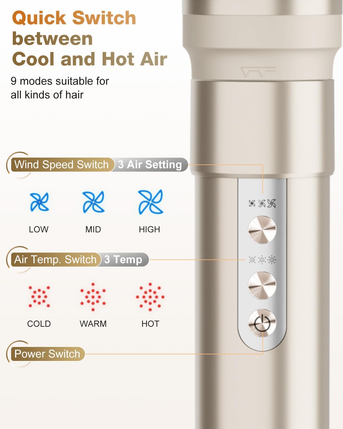 NO HEAT DAMAGE: Gives you fast drying while maintaining low heat, rather than getting hotter as it runs, This hair styler and dryer with intelligent thermal control can automatically detect the air temperature, thus controlling it below 248°F to avoid irreversible heat damage to the hair.