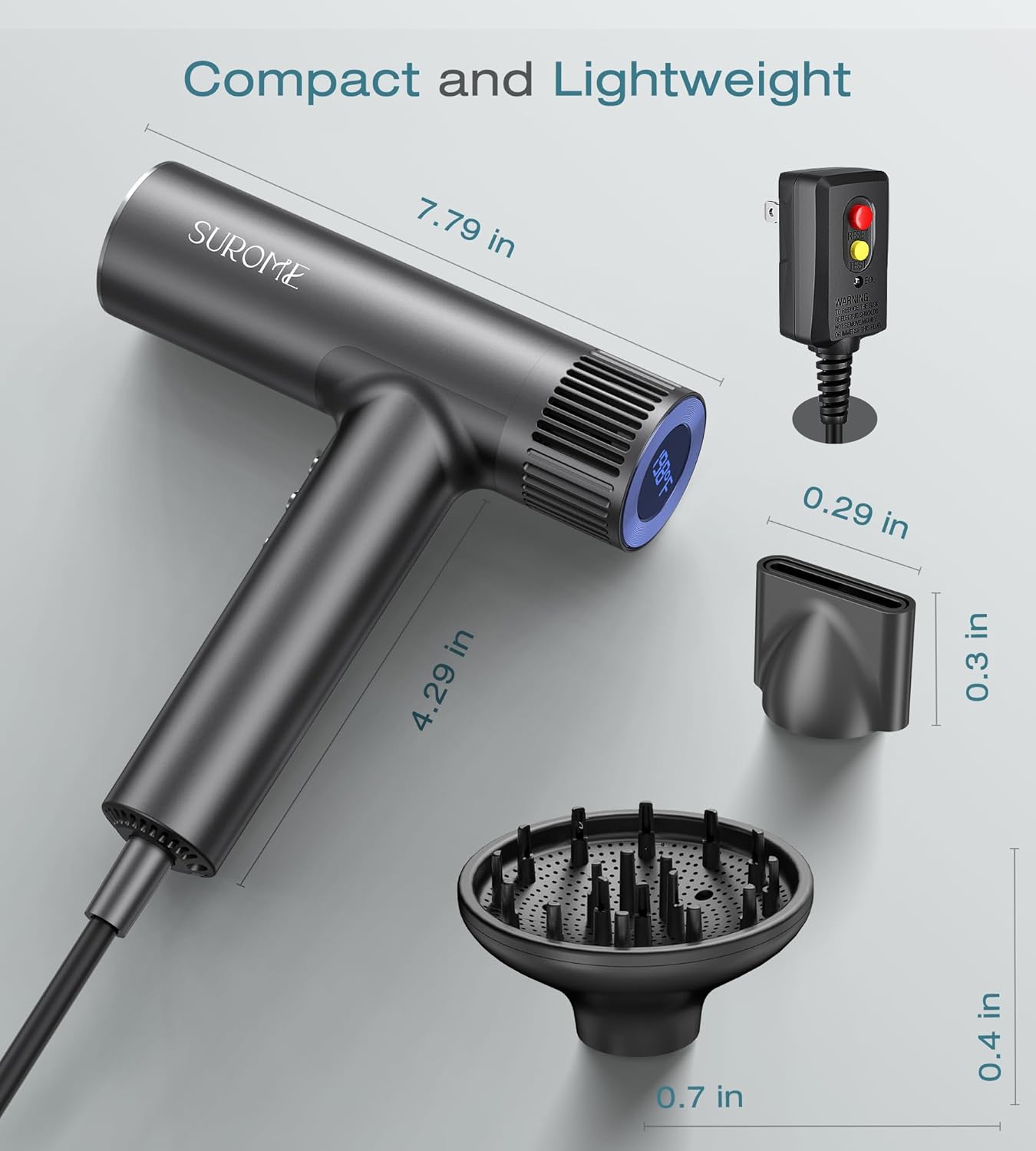 【Lightweight & Ergonomic for Comfortable Use】Boasting an exquisite T-shaped design with ergonomic considerations, this dryer ensures balanced force distribution and a comfortable grip akin to holding a breeze, ensuring comfort even during extended use. Weighing only 0.68lb/310g, it’s perfect for travel and saves space while delivering professional-grade performance