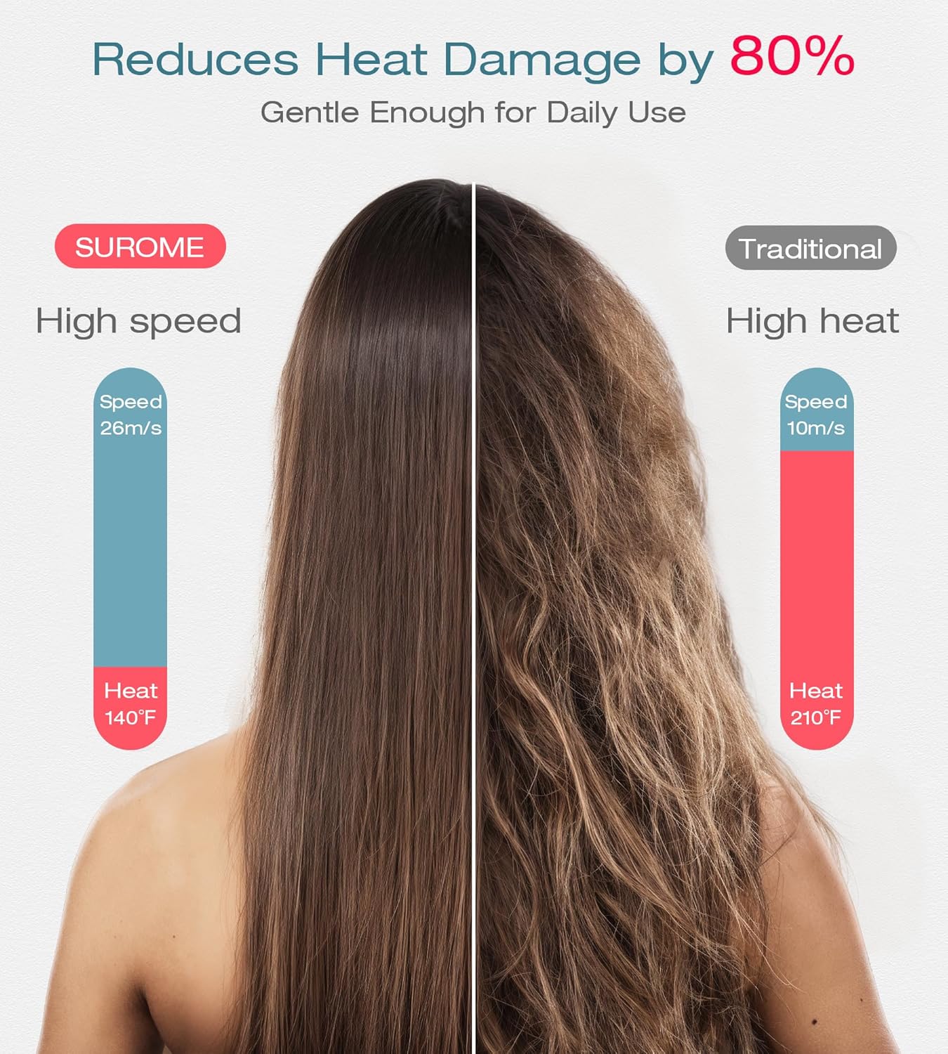 【Revitalize Your Hair with SUROME】Experience our revolutionary hair blow dryer equipped with cutting-edge technology for a rapid and silky-smooth blow-drying session that’s gentle on your strands. Get ready for exceptional power and speed thanks to the professional-grade, lightning-fast BLDC 110,000 rpm motor. drying hair up to 6 times faster than traditional dryers