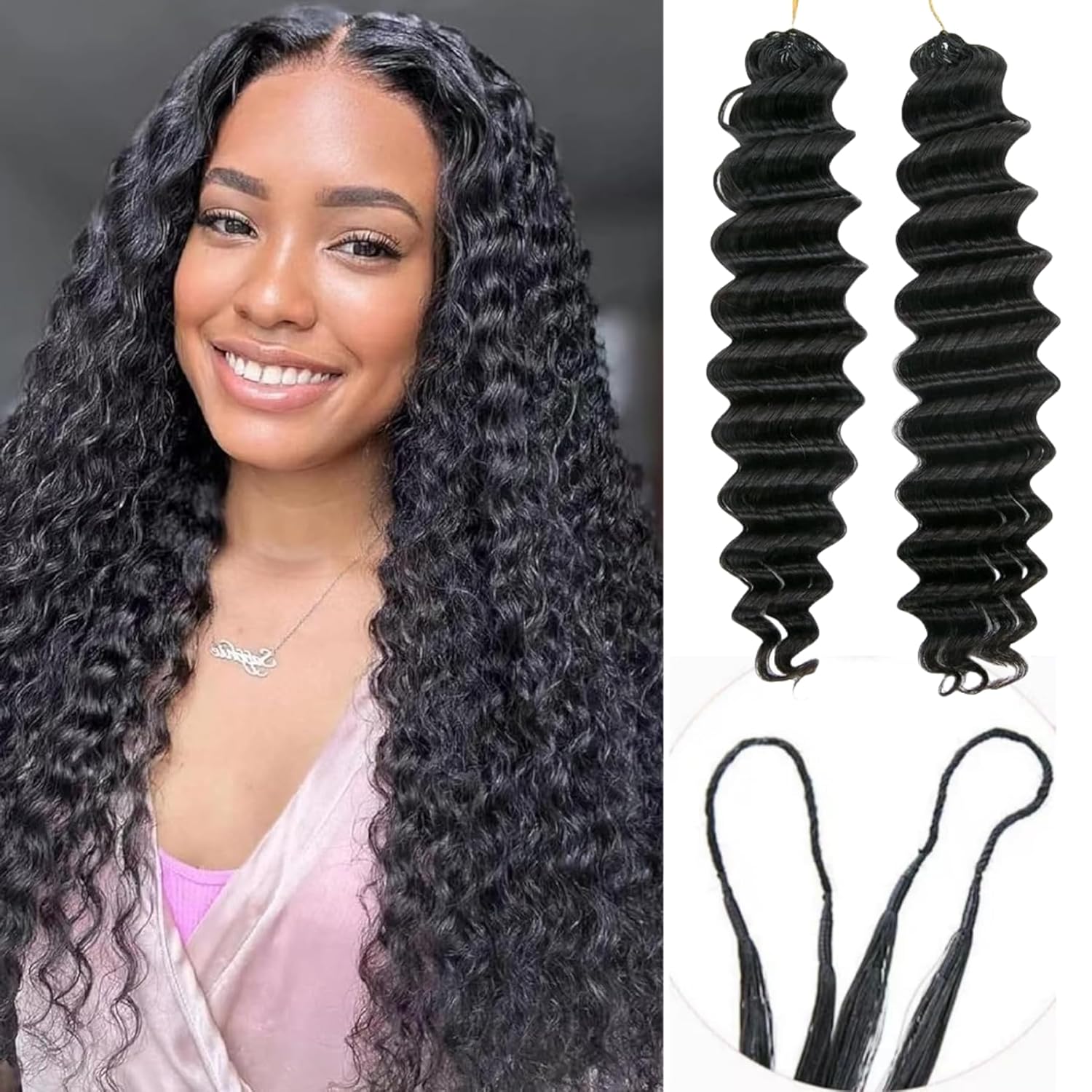 The video showcases the product in use.The video guides you through product setup.The video compares multiple products.The video shows the product being unpacked. Deep Wave Crochet Hair Extensions Merchant Video