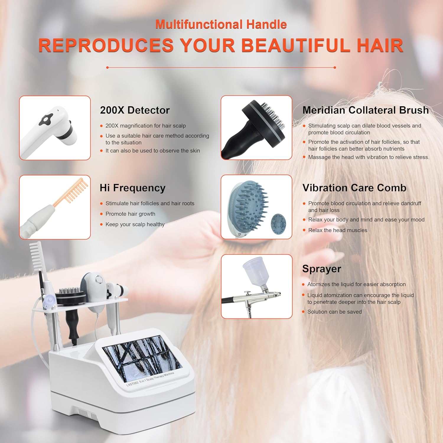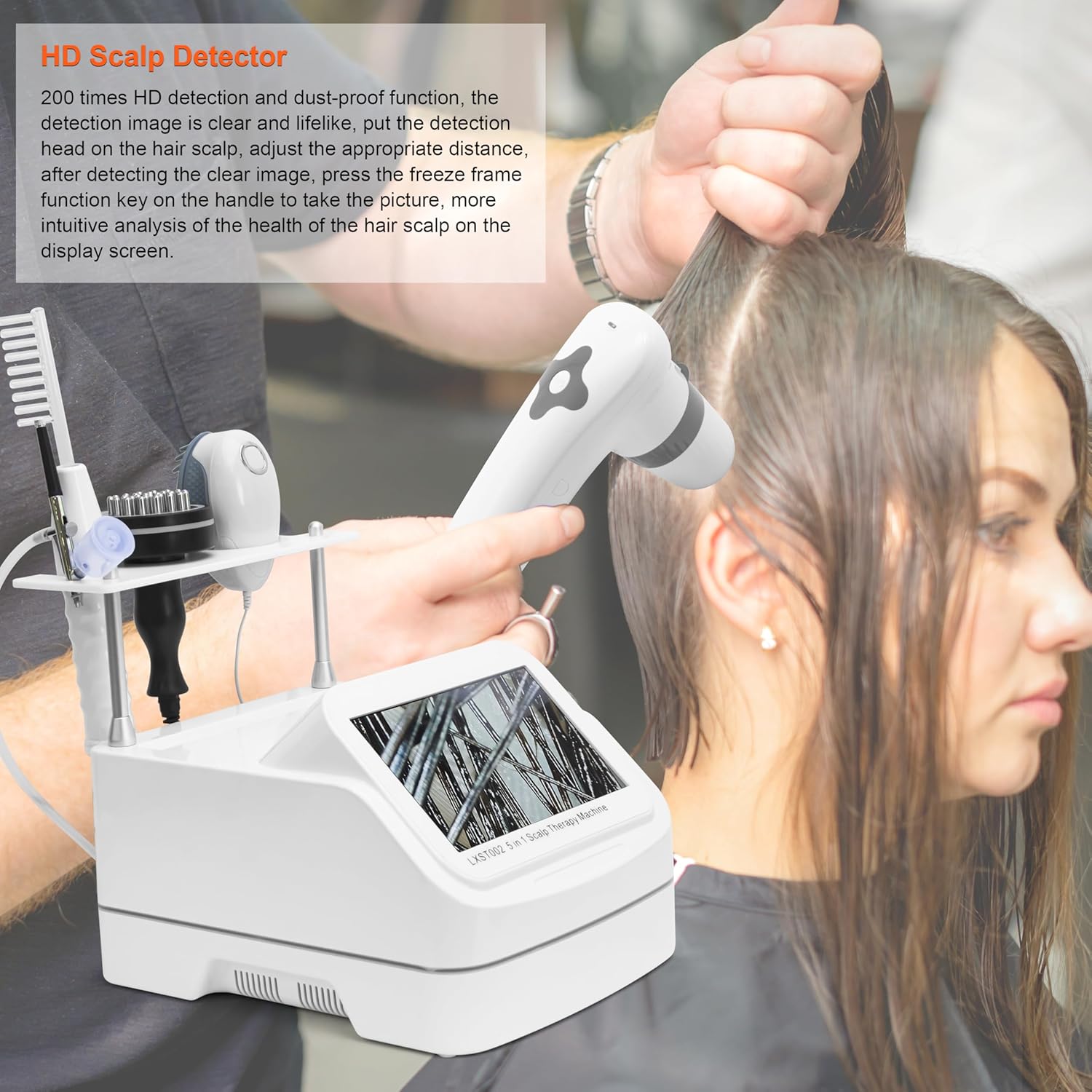 [High-Definition Detection Head]-Includes 50x and 200x magnification detection heads, utilizing cutting-edge image synthesis technology for precise scalp and hair analysis. Enhance your hair-care routine with accurate product selection and enjoy the versatility of skin inspection capabilities.
