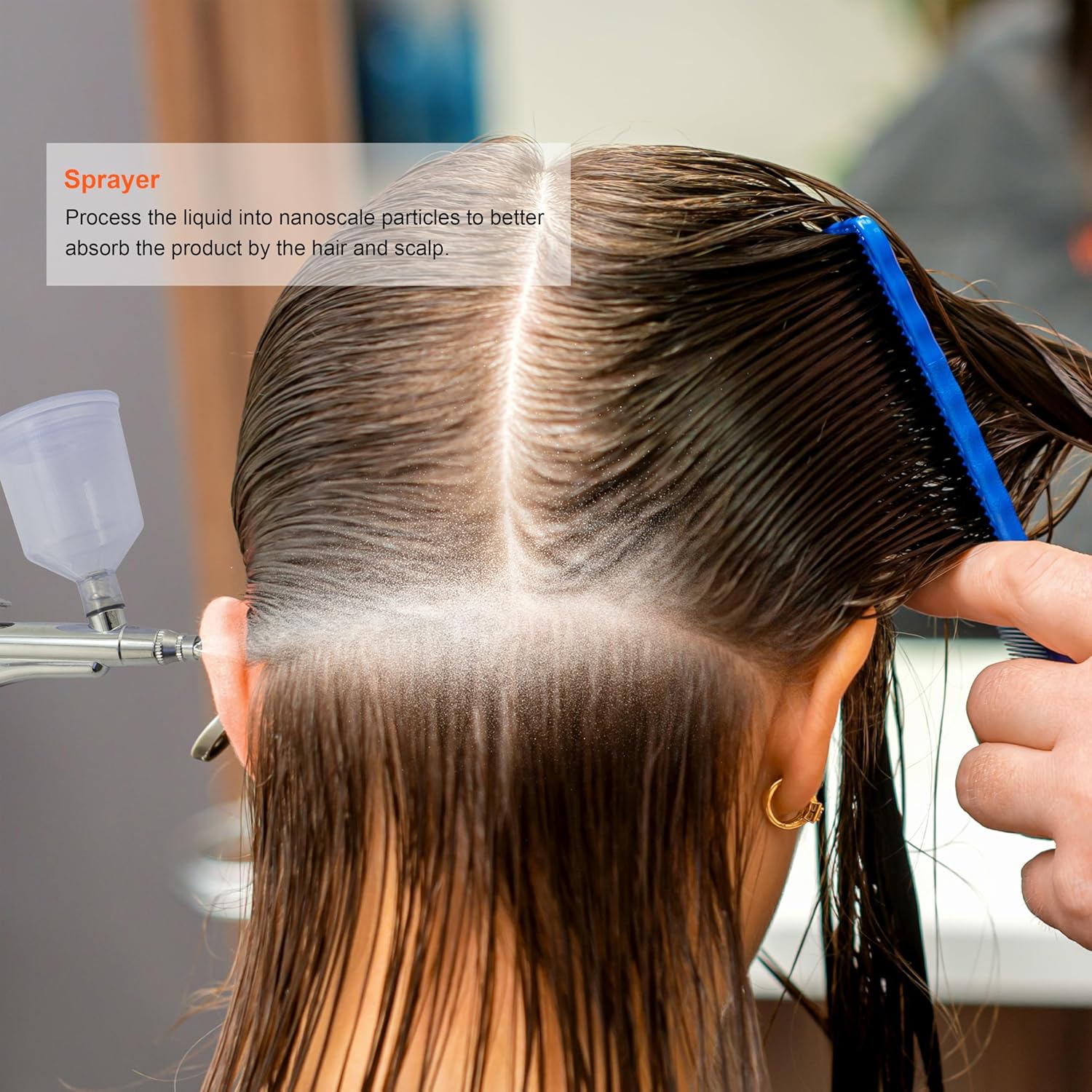[Spray Gun]-Employs a pressure swing adsorption principle for instant atomization, transforming hair-care solutions into a fine mist for easy and efficient absorption. An ideal match for liquid skincare such as toners and essences, with a user-friendly liquid cup design.