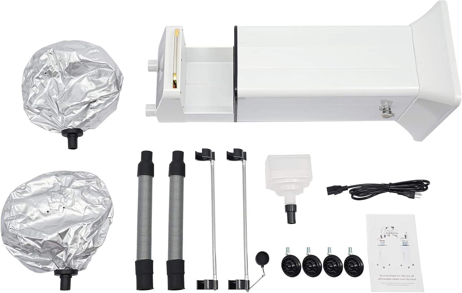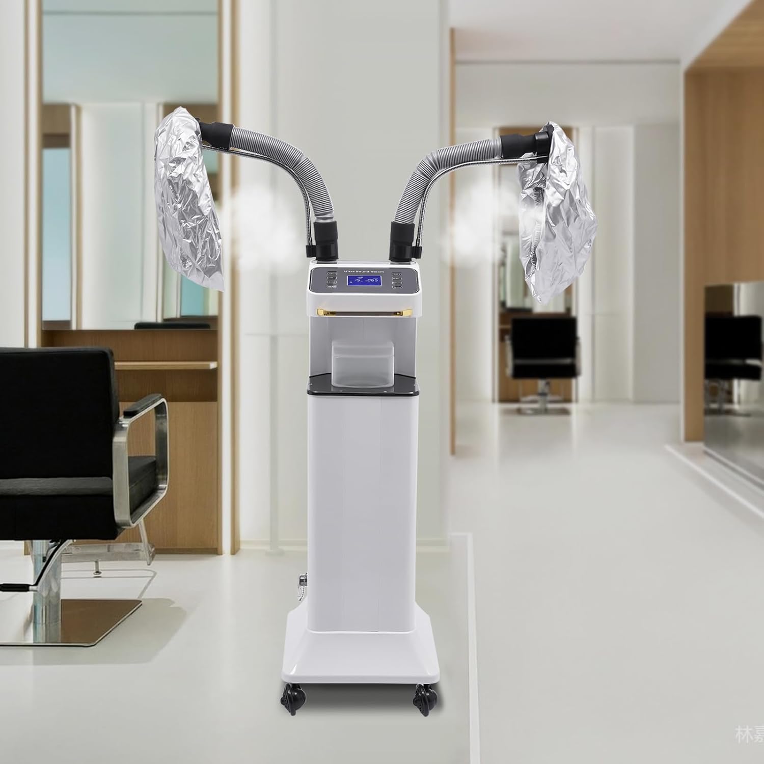 Freestanding Multifunctional Nano Hair Steamer Micro Mist Ozone Oil Treatment Dyeing Machine with 2 Steam Caps Hooded Hair Care Processor 2 Telescopic Tubes Time/Temp Control for Salon Barber Shop SPA