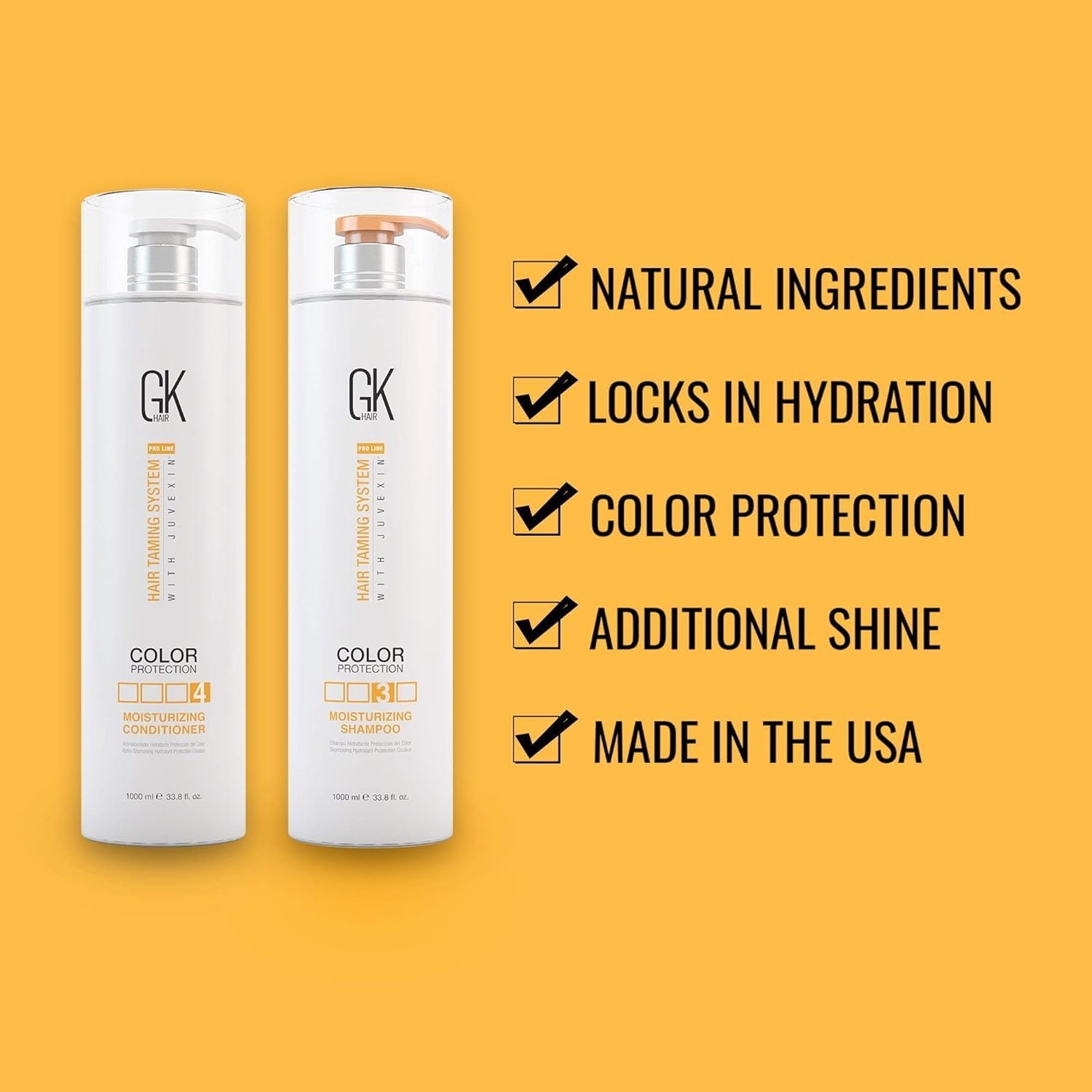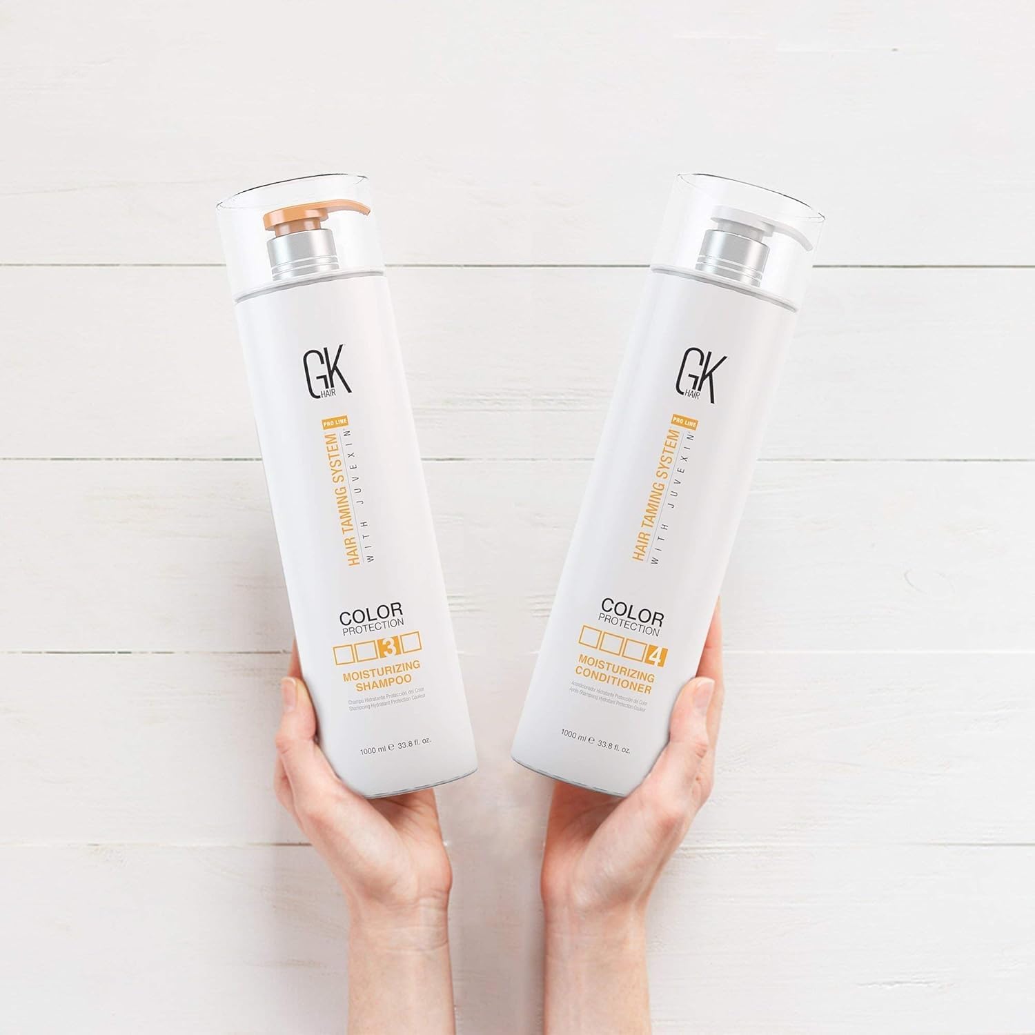 GK Hair Color Protection Moisturizing Shampoo Dull and lifeless hair can be quite the dealbreaker when it comes to creating the perfect look. With constant exposure to harmful toxins, chemicals, and environmental conditions on a day-to-day basis, hair tends to dry out and needs to be replenished with moisture to be revived back to a healthy state. The Color Protection Moisturizing Shampoo from GK Hair is the ideal choice for anyone who is struggling with dry and coarse hair types that have been subjected to color, chemical treatments, and dryness from environmental damage like the sun or pollution.GKhair Moisturizing Conditioner Color Protection nourishes and moisturizes dry and brittle hair. With deep-moisture complex featuring Natural Seed Oils, Plant & Grain Extracts this moisturizing conditioner provides natural moisture and strengthens hair by protecting against damage. Keratin anti-aging agent helps restore hair to its natural state. GKhair Moisturizing Conditioner reinforces the duration of the color without weighing the hair down. Fortified with natural proteins and vitamins to strengthen and nourish hair from root to tip for increased elasticity, providing healthy, manageable, soft, silky and smooth hair.Healthy Benefits of Using Hair Serum Your hair is very important when it comes to express yourself. It has an essential role on your non-verbal communication. Early mornings when your hair is in place, everything is perfect. But if your hair is having a bad day, it turns off your mood automatically. Things like dryness, intense damage, split ends and frizz, make it difficult to have flawless hair. These hair problems are usual in every woman’s life. The actual issue is to find a considerable solution for these hair problems. These problems result due to insufficient moisture and nourishment for your hair. Every time you wash your hair, your hair loses its moisture and feels brittle after some time. Furthermore, the daily hair styling, and the use of heating