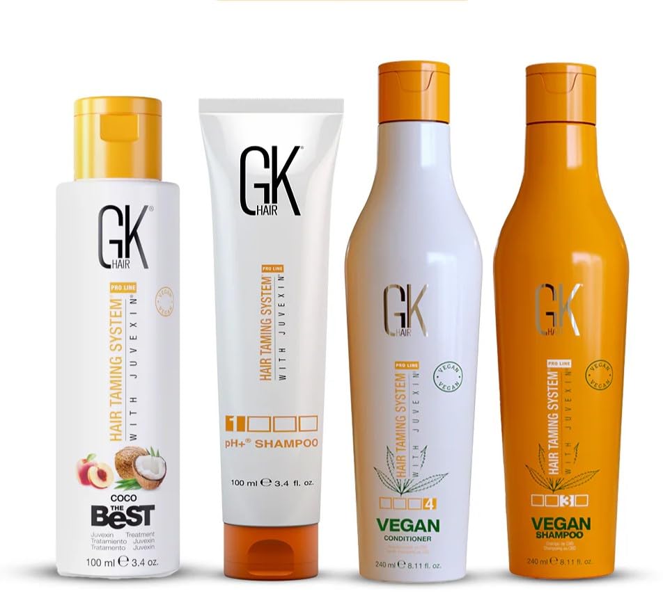 Vegan Formula: The GK Hair Global Keratin Vegan Shampoo and Conditioner are crafted with plant-based ingredients, ensuring a gentle yet effective cleansing experience. Ideal for those seeking cruelty-free hair care, this set nourishes your hair while being kind to the environment.