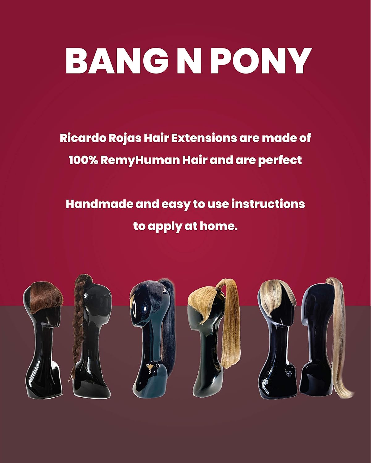 CLIP-IN PONY TAIL AND BANGS HAIR EXTENSION, #35 AUBURN: Ricardo Rojas Hair Extensions are made of 100% Remy Human Hair and are perfect to create length, thickness, volume, and add highlights or color to textured looks. Includes easy clip-in bangs and pony tail: 20” length, 120g Of Hair.