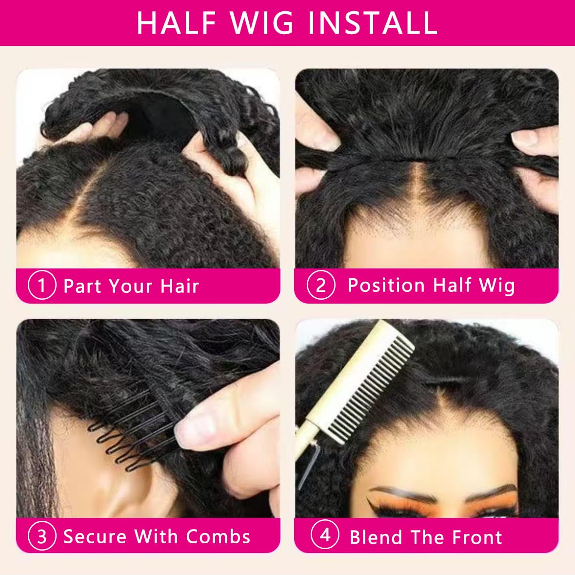 3 In 1 Half Wig Advantages:No Lace, No Glue, No Irritation.Protect Our Scalp, Looks Natural, Endless Styles Possibilities, Minumum Styling Experience, Beginner-Friendly Styling.
