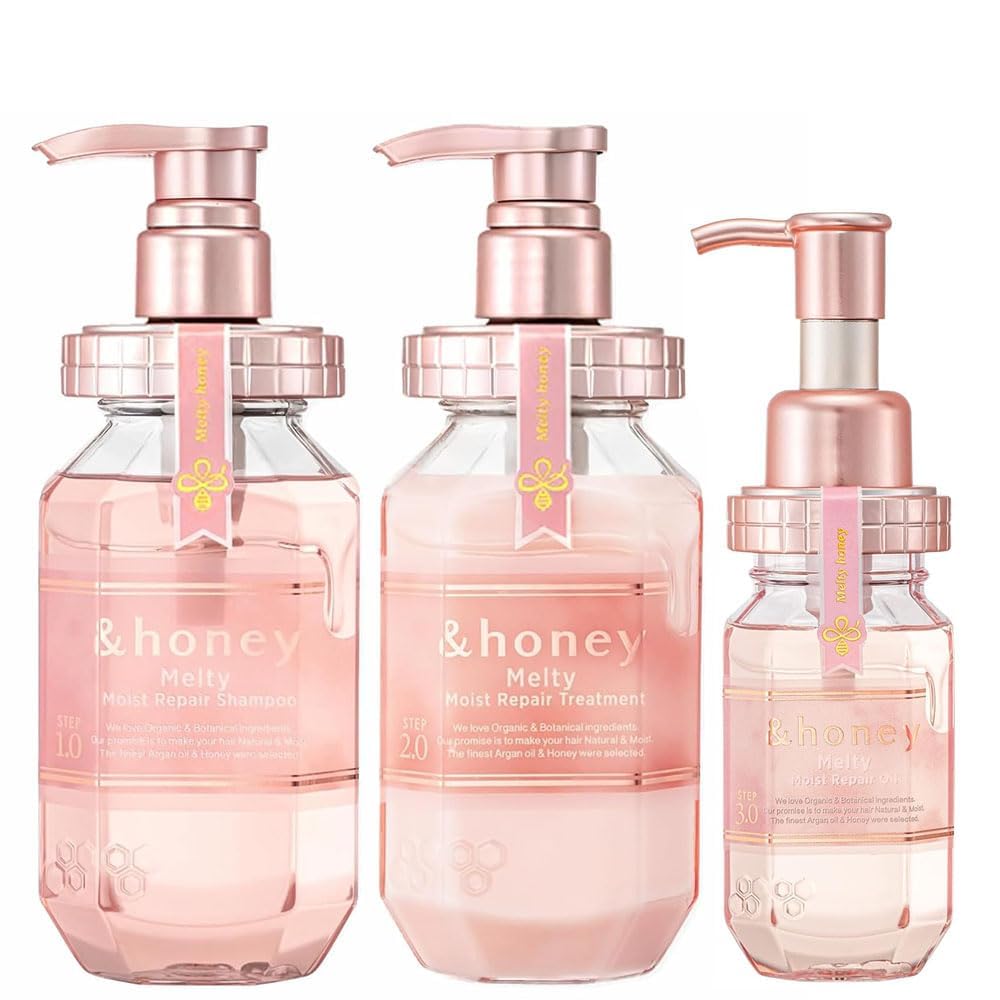 &honey Melty Moist Repair Shampoo, Treatment & Hair Oil Set + Free Hair Tie