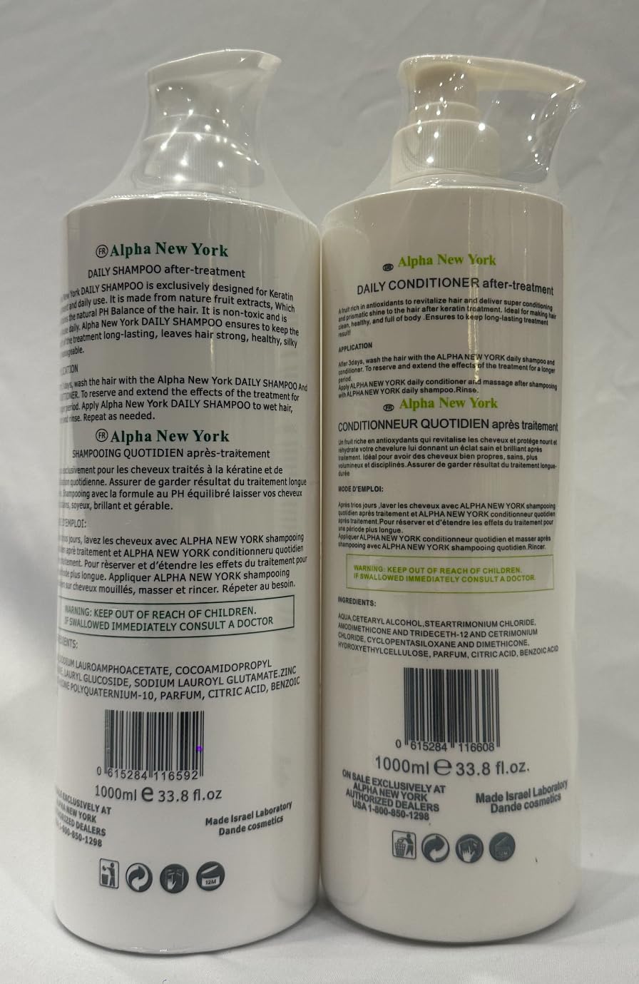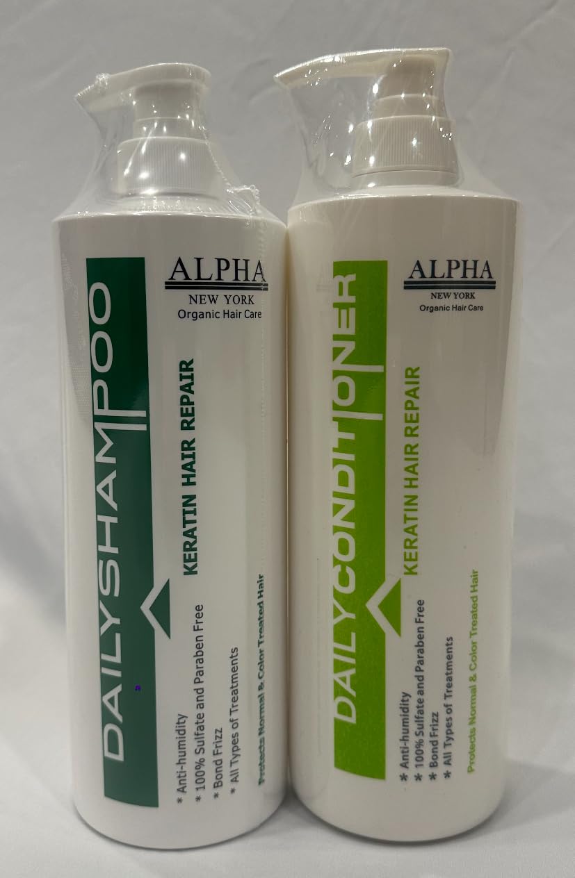 Transform your hair care routine with Alpha New York’s Daily Shampoo and Conditioner Keratin Hair Repair Set. This professional-grade duo comes in generous 33.8 fl. oz. bottles, designed specifically for maintaining keratin-treated hair. The daily shampoo gently cleanses while preserving your keratin treatment, helping to extend its longevity and maintain that smooth, manageable texture. The complementary conditioner works in harmony with the shampoo, providing essential moisture without weighing down your strands. Together, this power pair helps maintain the results of your keratin treatment while keeping your hair looking sleek and feeling healthy. The large-capacity bottles ensure you’ll have plenty of product for consistent, daily use. For best results, use both products as part of your regular hair care routine to maintain the benefits of your keratin treatment.