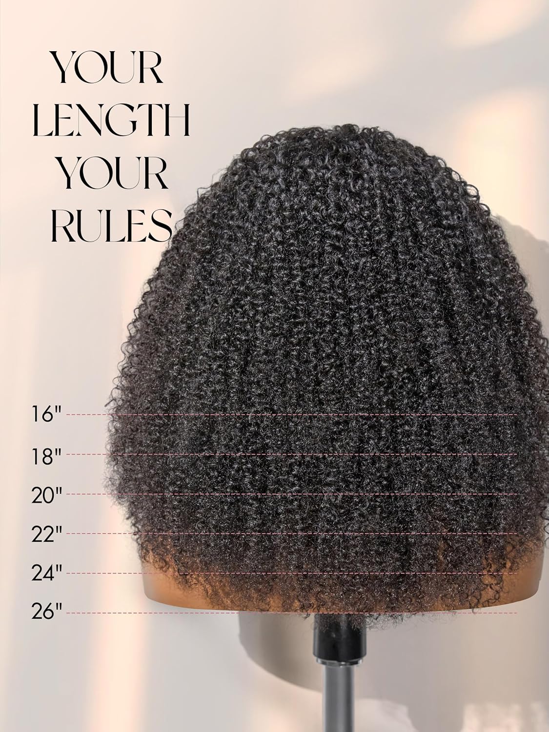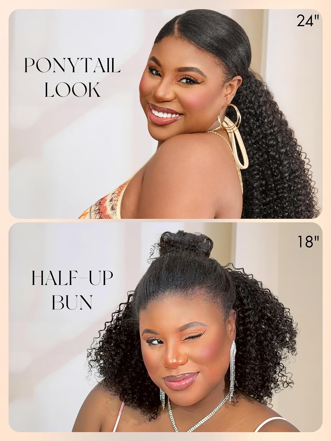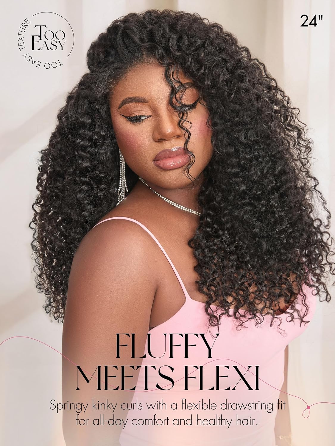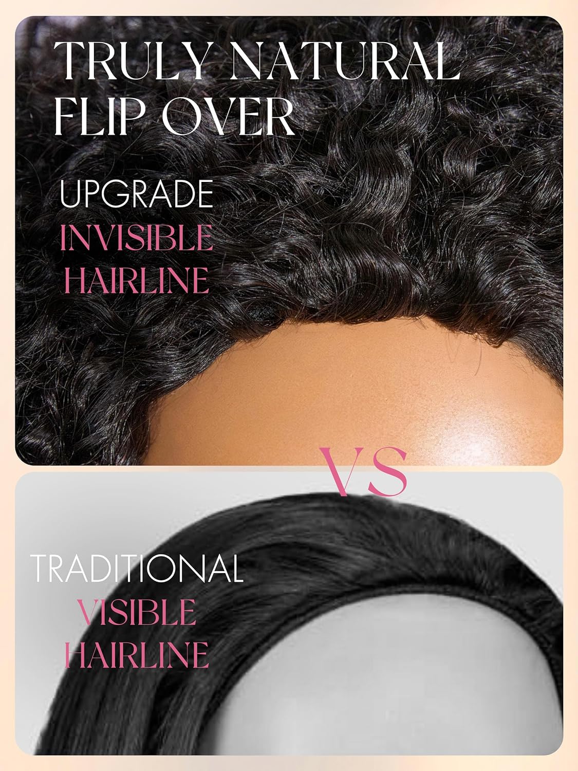 LUVME HAIR Half Wig Kinky Curly Flexi-Fit Invisi Flip Drawstring Wig 200% Density Glueless Wigs 100% Human Hair Natural Black Ready to Go Headband Wig for Women 24 Inches