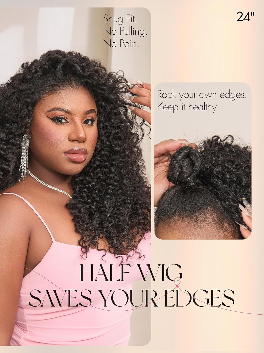 100% Virgin Human Hair Quality: Crafted from premium unprocessed virgin human hair, our half wig boasts unmatched softness, natural vibrancy, and zero chemical odor. Heat-friendly and tangle-resistant, it withstands repeated styling—straighten, dye, or curl effortlessly without shedding or damage.
