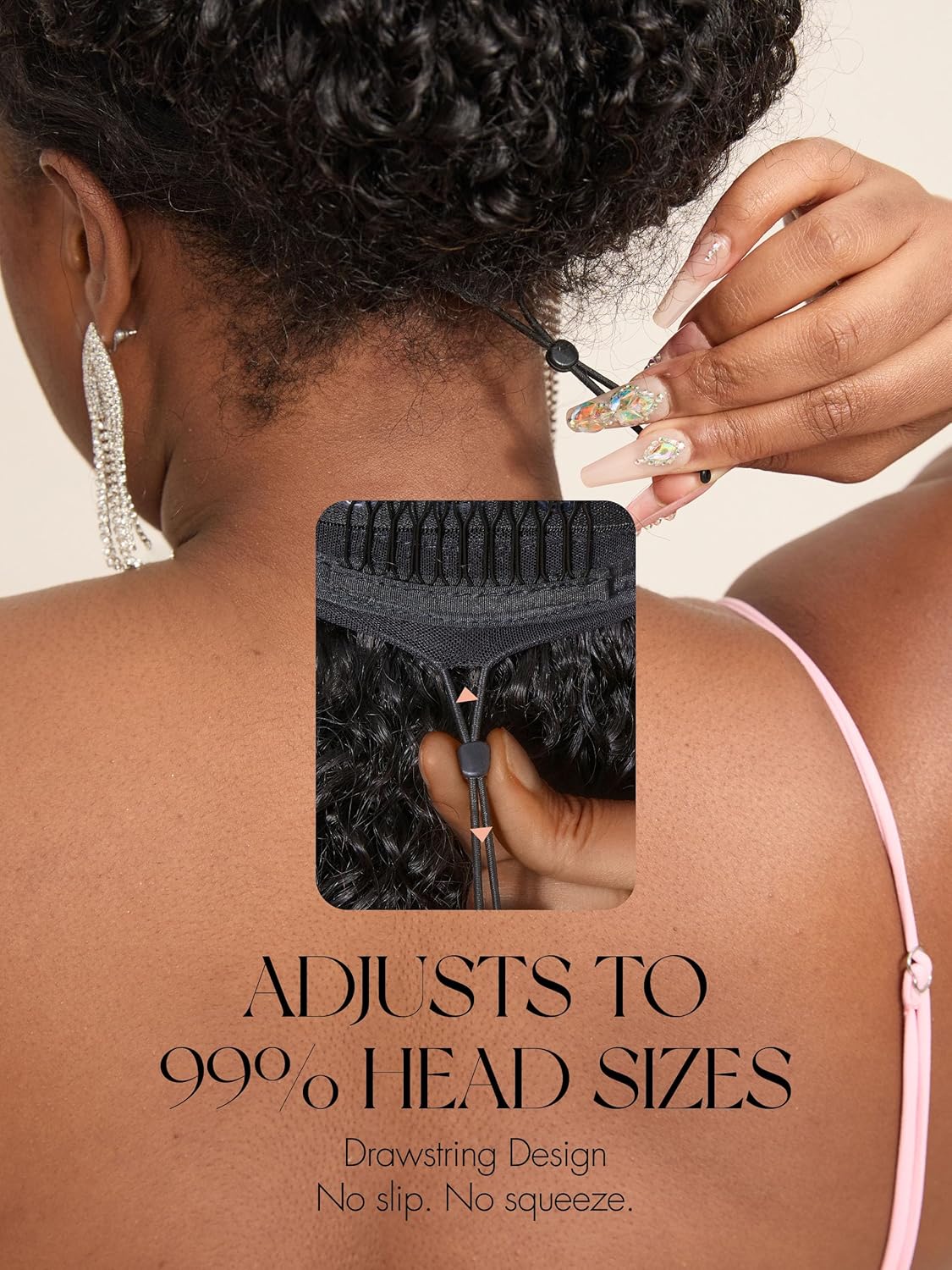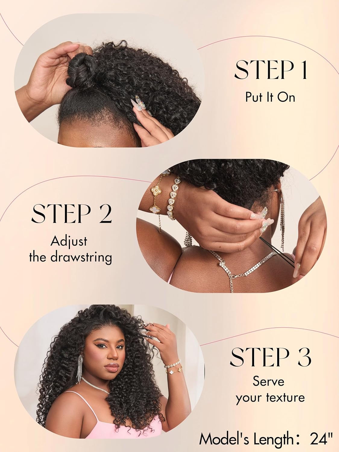 90-Second Beginner-Friendly Installation: Simplify your routine with intuitive features. Slide combs into your natural hair. Adjust drawstring for snug fit. Blend edges seamlessly