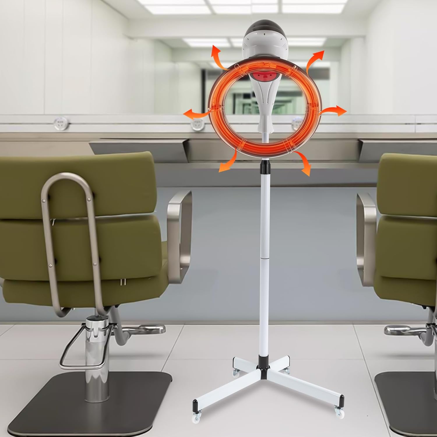 Multifunctional Freestanding Orbit Hair Dryer, 110V 950W 360° Rotation Adjustable Height & Angle with Universal Wheel, Led Touch Screen for Hair Care, Hair Dry (Gray)