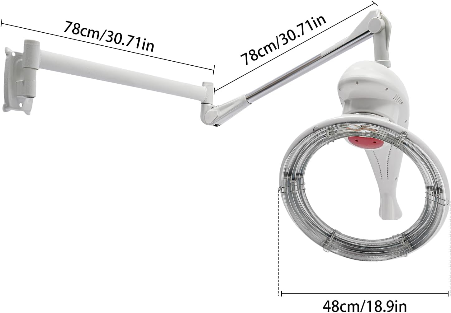 【Specification】Material: ABS, Metal, Stainless Steel. Process: Injection Molding. Power Source: Corded Electric. Plug Type: US Standard. Each Arm Length: 78cm/ 30.71in. Heating Ring Diameter: 48cm/ 18.9in.