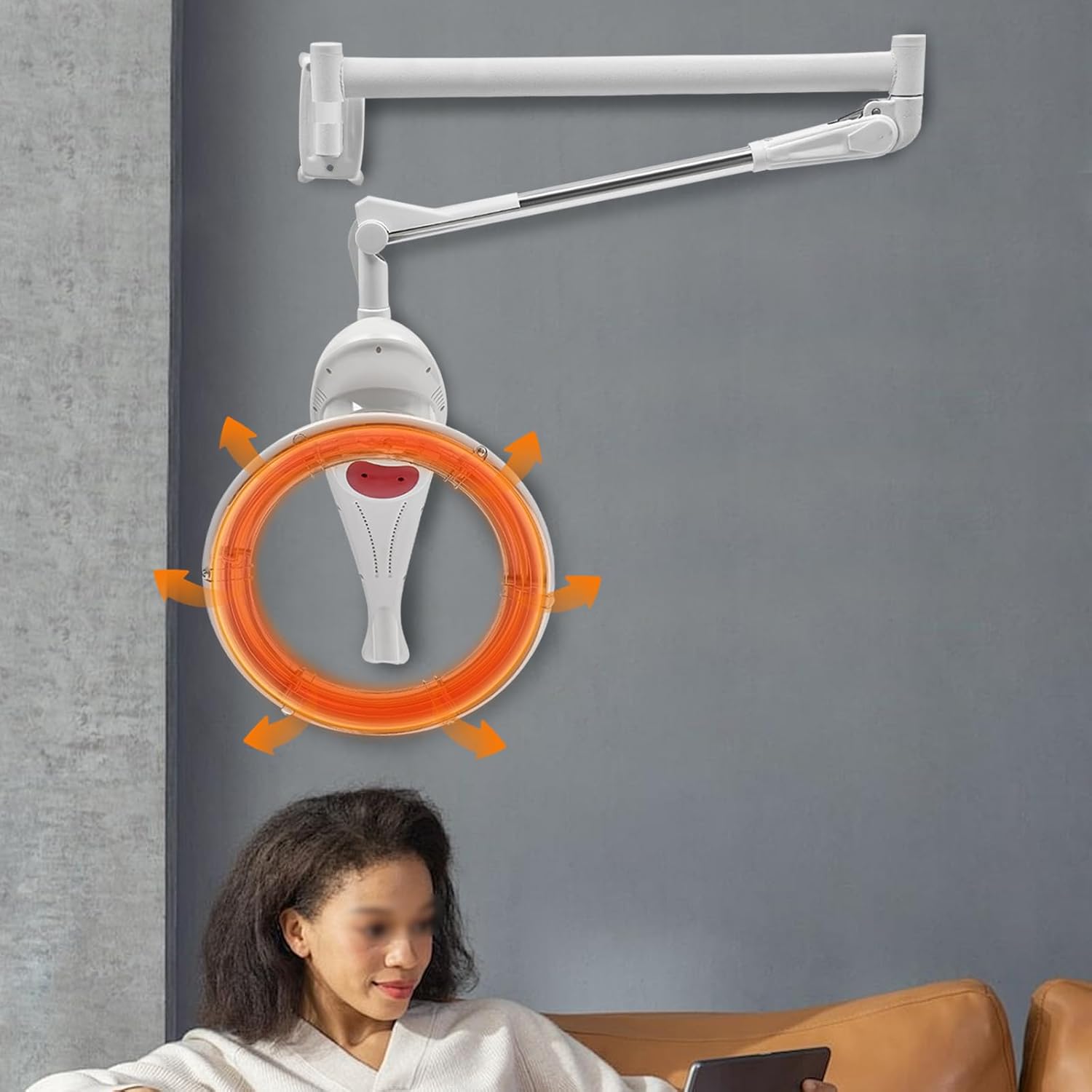 Multifunctional Hair Treatment Machine, Wall Mount Orbiting Rotating Hair Care Machine, 950W Home Salon Hair Perming Machine for Baking Oil, Hair Coloring, Hair Perming (White)