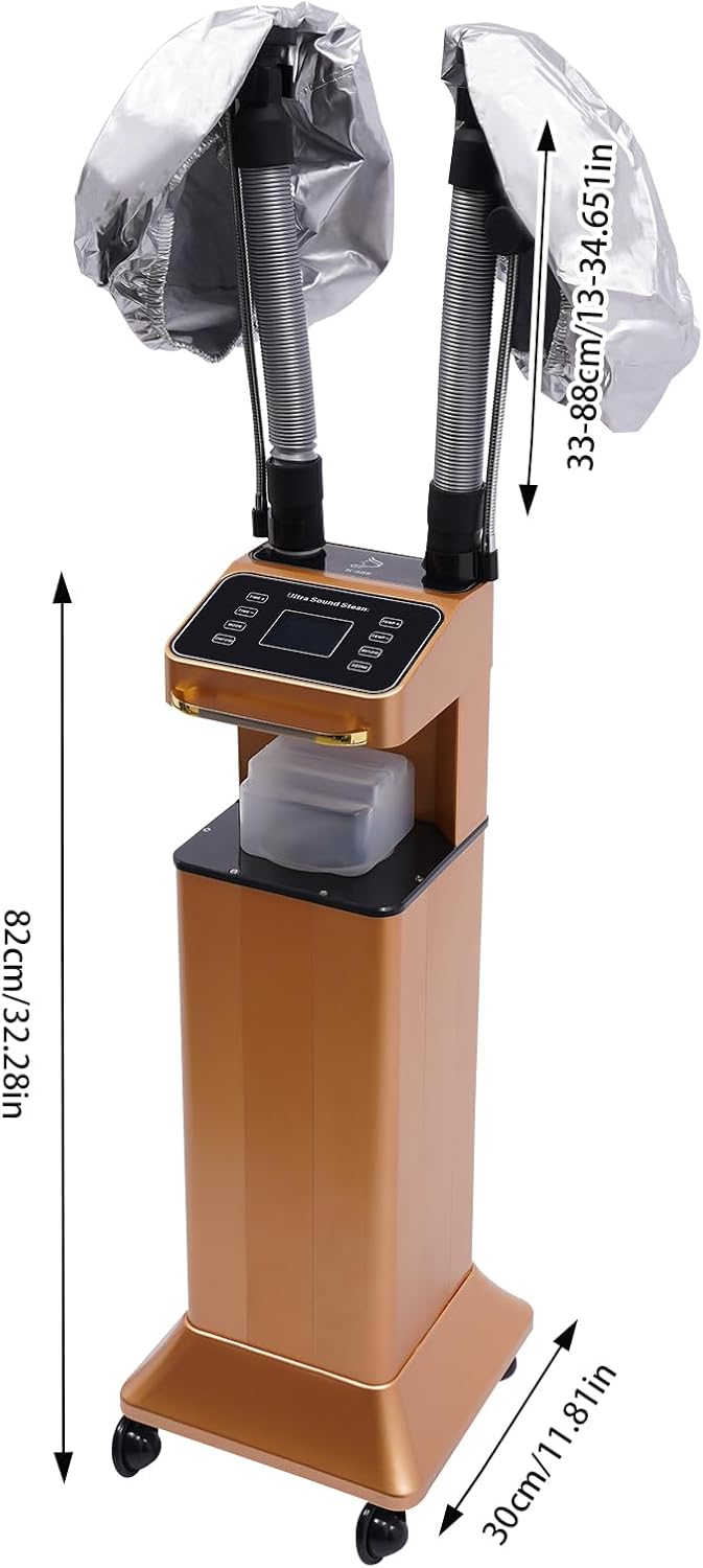 Nano Hair Steamer Machine, 110V 650W Multifunctional Steamer for Hair, Vertical Nano Hair Steamer Beauty Salon with Wheels, Hair Color Processor for Hair Care Hair Repair (US Stock-Gold)