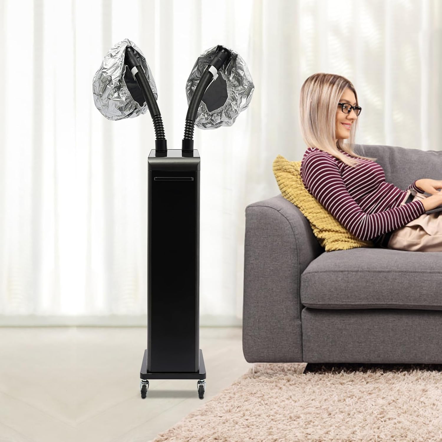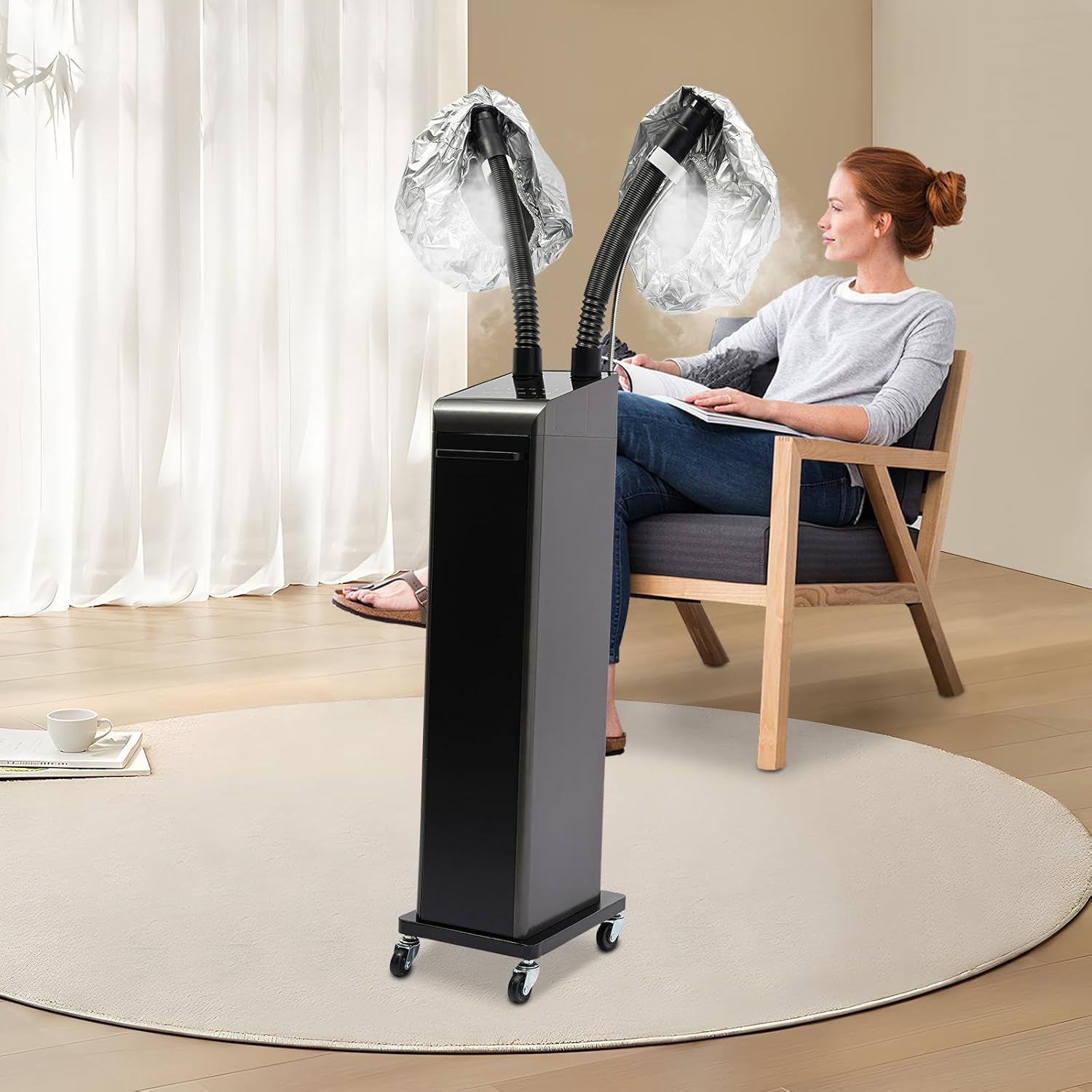 Nano Hair Steamer with 2 Vaporizing Caps, Adjustable Professional Micro Mist Hair Processor with Rolling Wheels, 700W 110V Nano Hair Steamer Machine, Multifunctional Hair Steamer for Hair Care