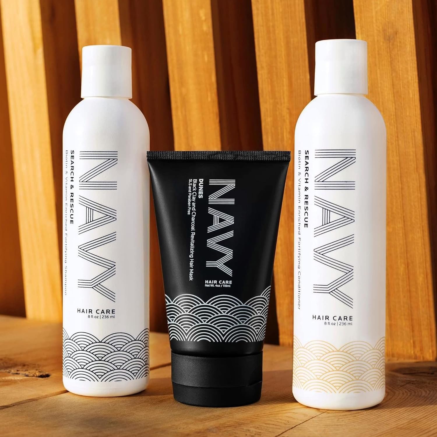 NAVY Hair Care Shampoo Conditioner Dunes Set | Search and Rescue Kisby Ring Hair Care Kit | Hydrating Hair Clay Mask, Hair Strengthening Shampoo, Conditioner for Damaged Hair
