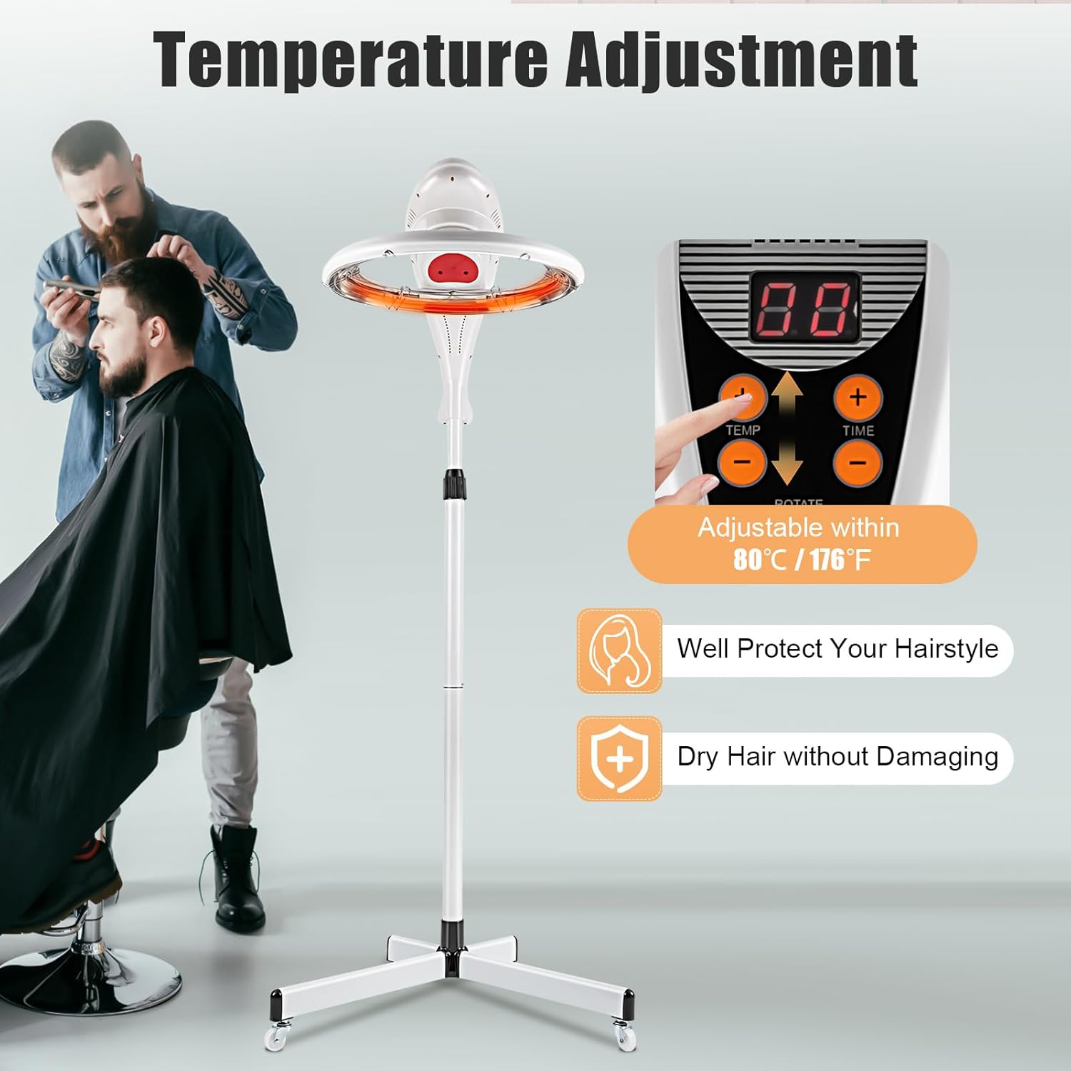 Orbiting Rotating Hair Processor, 950W Standing Rotating Hair Dryer with Cross Legs & Wheels, Adjustable Heat, for Home Hair Care, Salon Dyeing & Drying