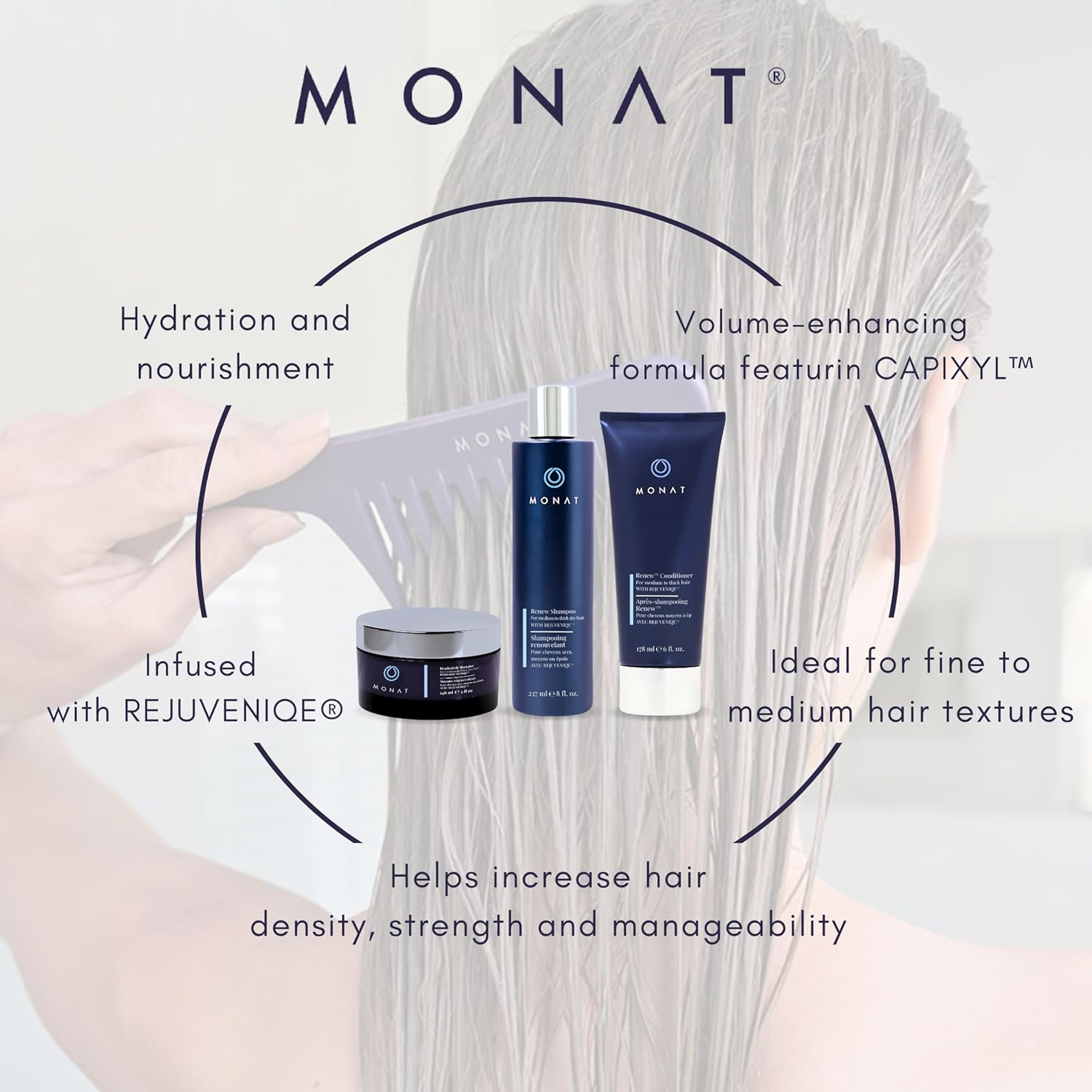 [ENRICHED WITH NATURE’S BEST] – Infused with antioxidant-rich REJUVENIQE and the strengthening power of CAPIXYL, our system nourishes hair with essential oils and nutrients, promoting a healthy-looking shine and unparalleled softness.