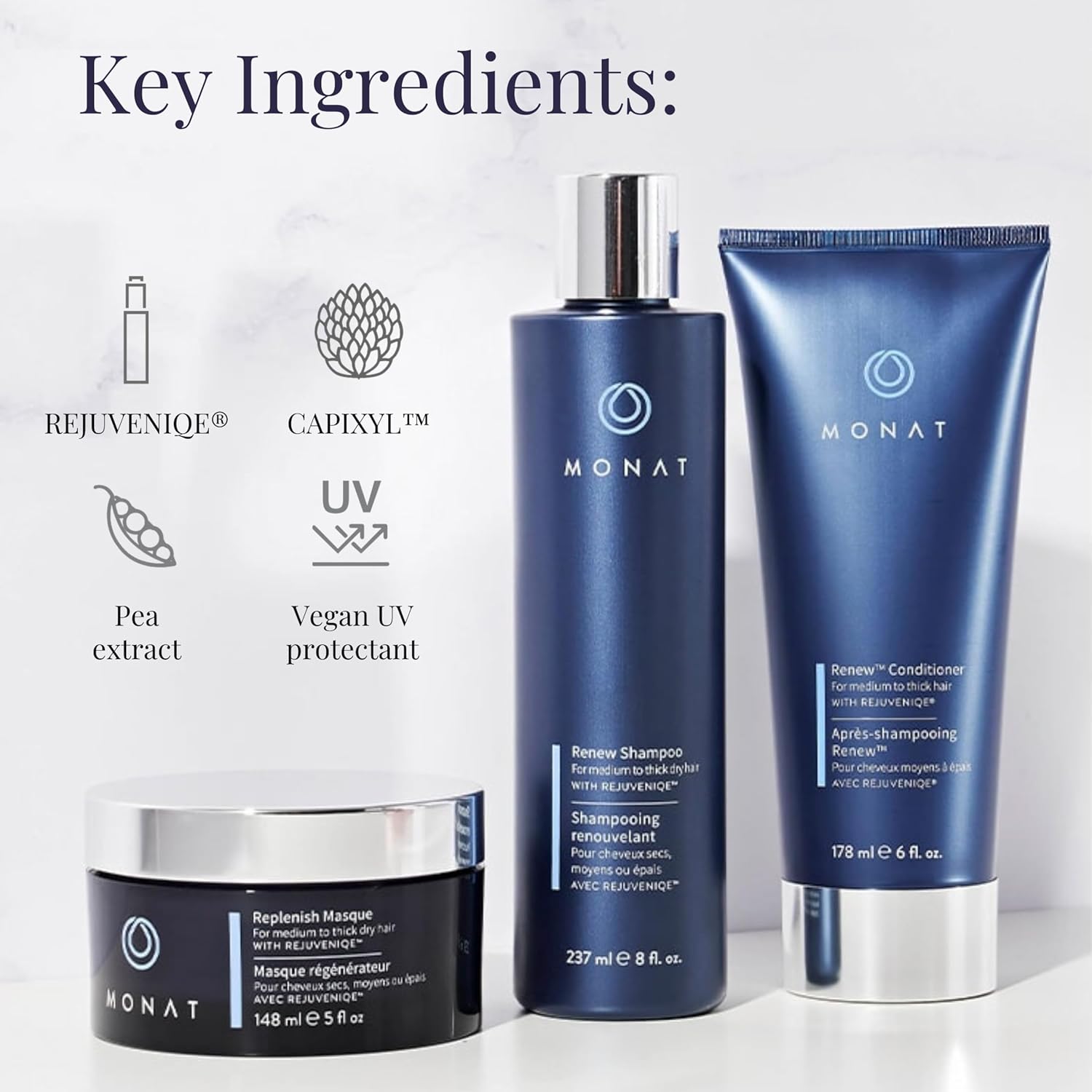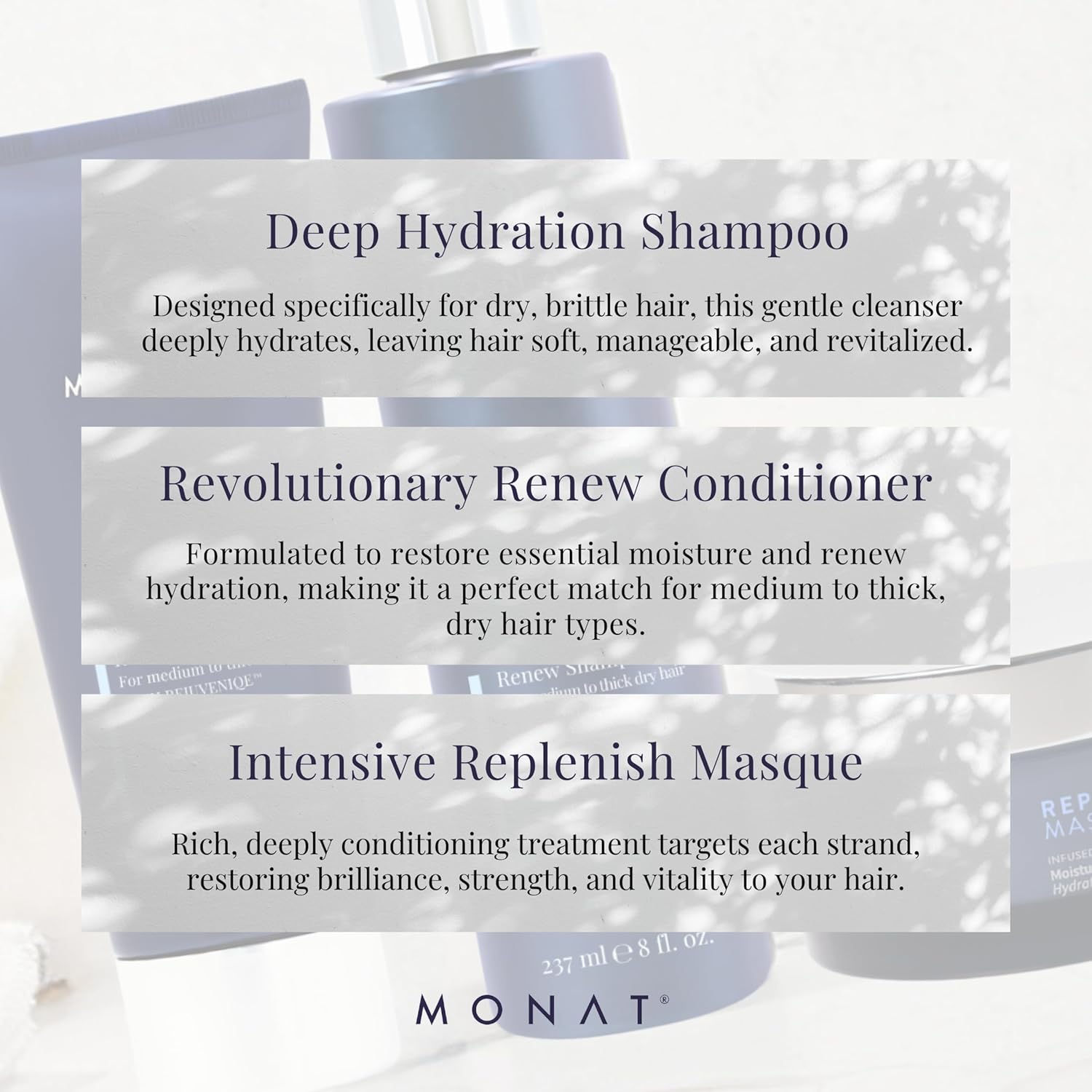 Renew™ Hydrating Hair Care System – Shampoo, Conditioner, and Masque System for Dry, Brittle Hair (8 oz/6 oz/5 oz)