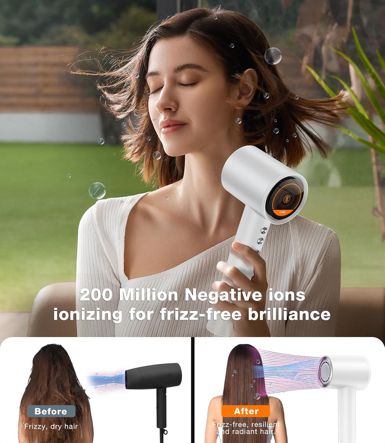 [Luxurious Hair Care Made Simple] Our 200 million negative ions technology, combined with industry-leading NTC smart chip, brings unparalleled care to your hair. The NTC system monitors temperature 110 times per second, effectively preventing heat damage. The high concentration of nourishing negative ions locks in moisture, leaving your hair smoother, shinier, and easier to manage, giving you a salon-quality finish every time.