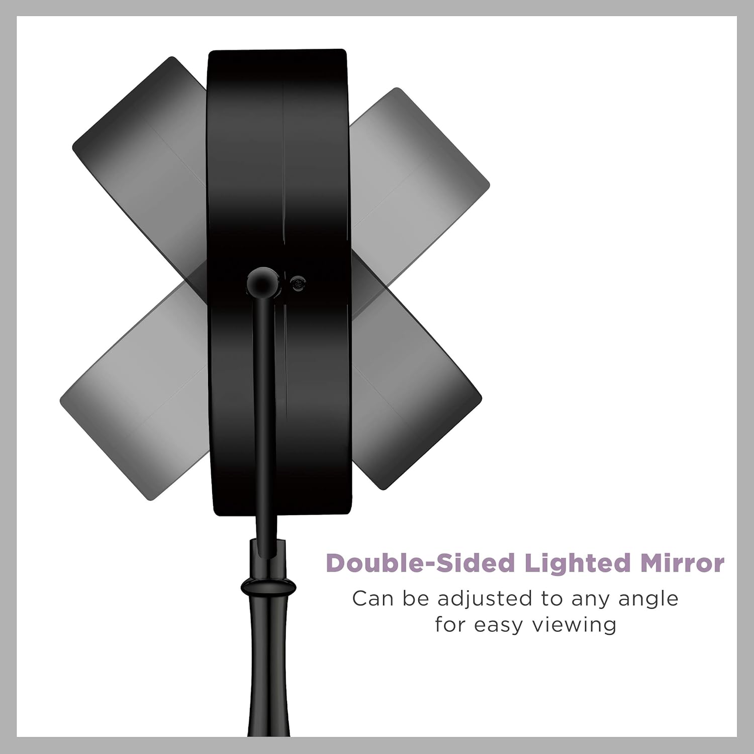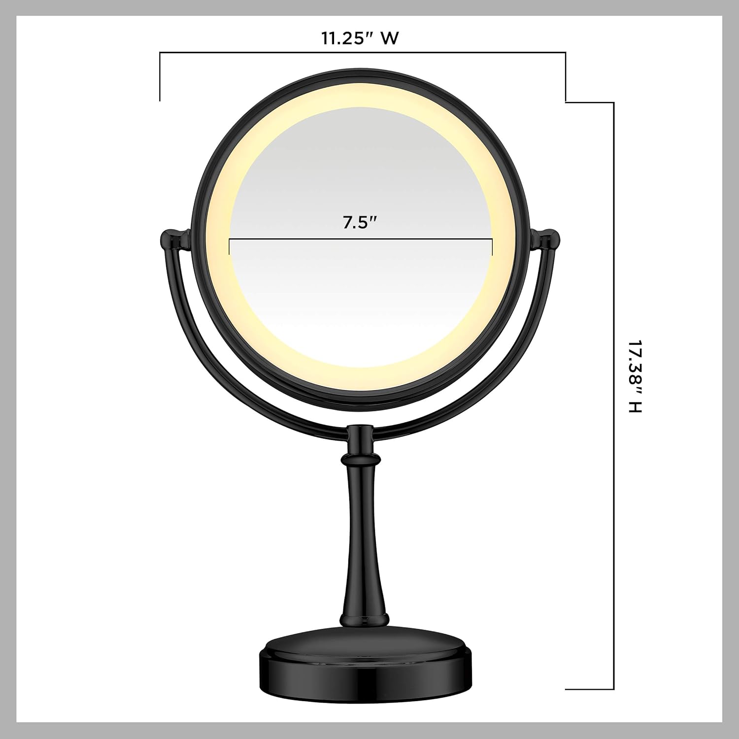 Conair Tabletop Mount Reflections Double-sided Incandescent Lighted Vanity Makeup Mirror, 1x/7x magnification, Matte Black finish