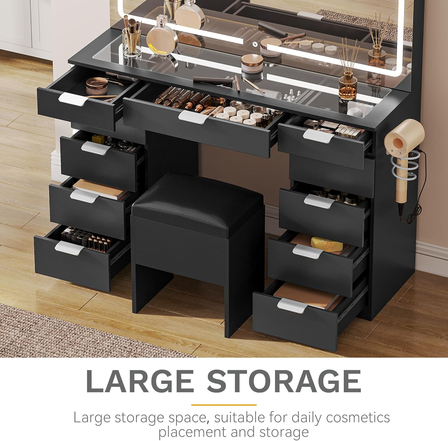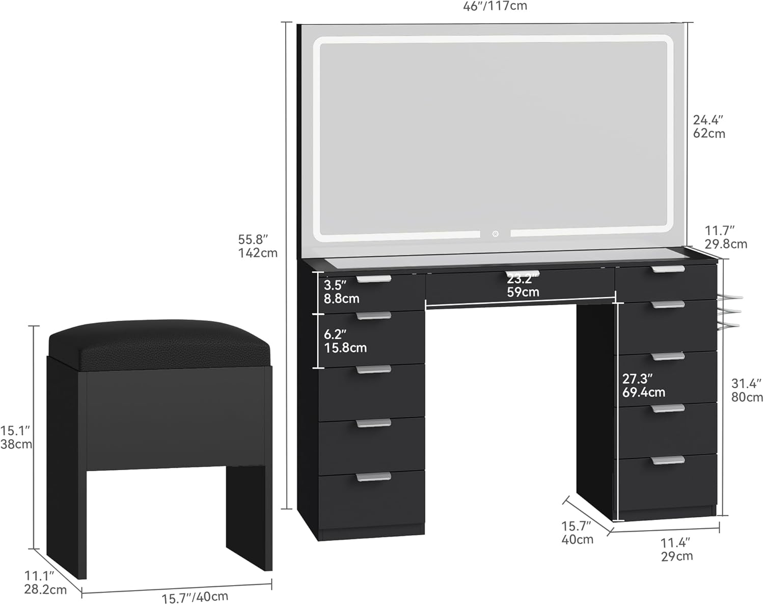 Plenty of Room: No more clutter. With 11 drawers and a storage stool, this vanity table offers smart, spacious compartments for palettes, hair tools, and more, keeping your space clean and your routine organized