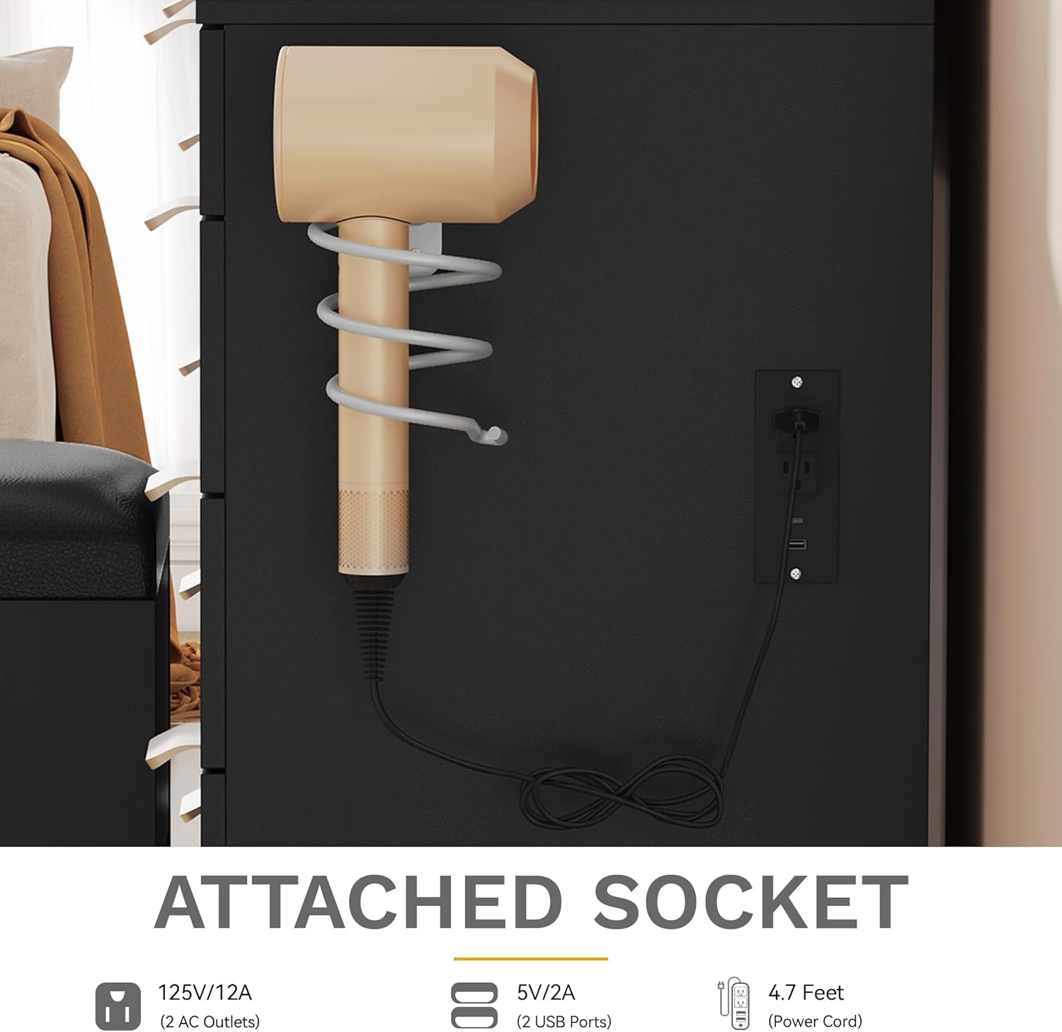 Built-in Power Station: No more hunting for outlets. Plug in your hair dryer, curler, phone, or speaker, all at once. The dressing table includes a Type-C, USB, and dual AC ports, plus a dedicated holder for your styling tools