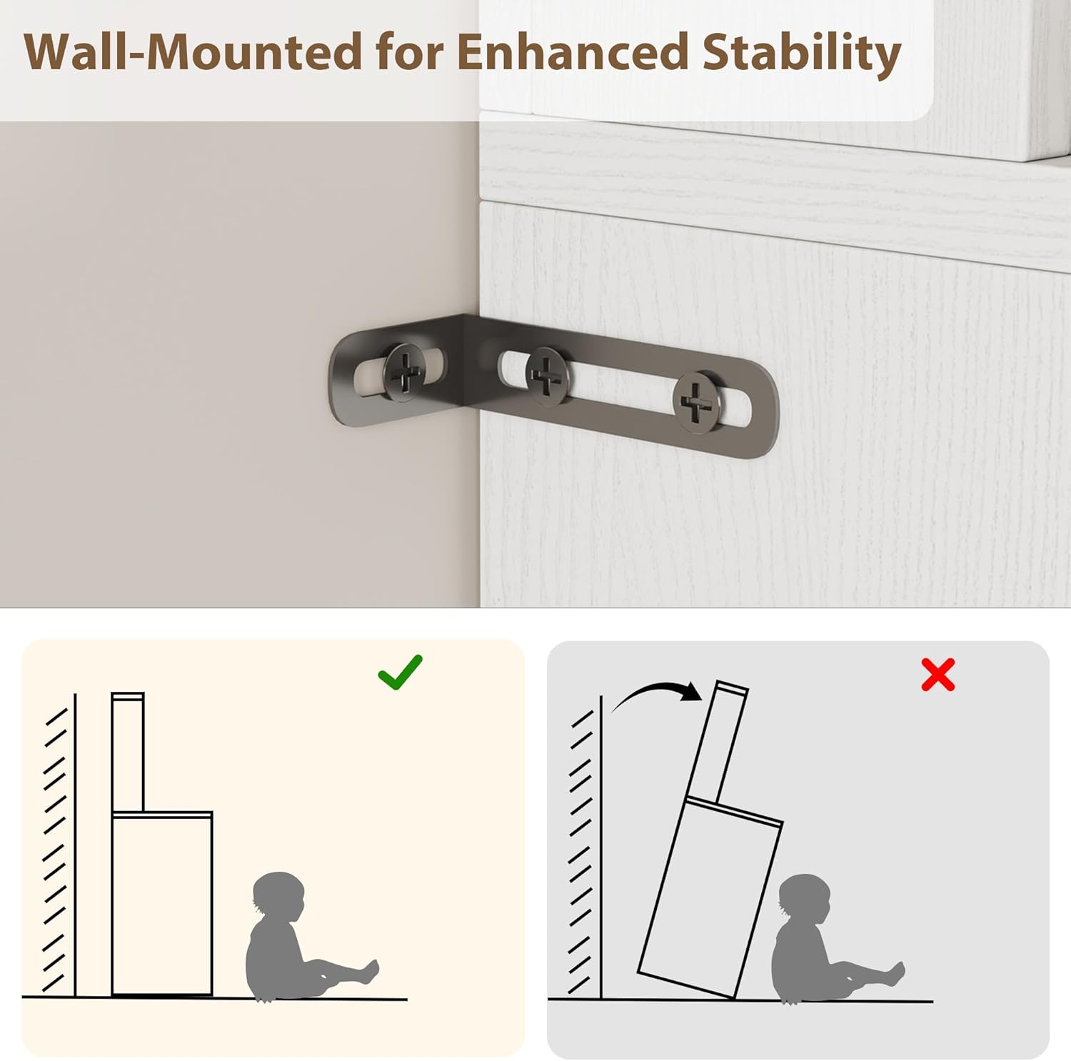 Don’t be alarmed by the vanity’s spacious size—it comes with a sturdy anti-tip safety feature. Once installed, the vanity will be securely anchored, eliminating any risk of wobbling or tipping over.