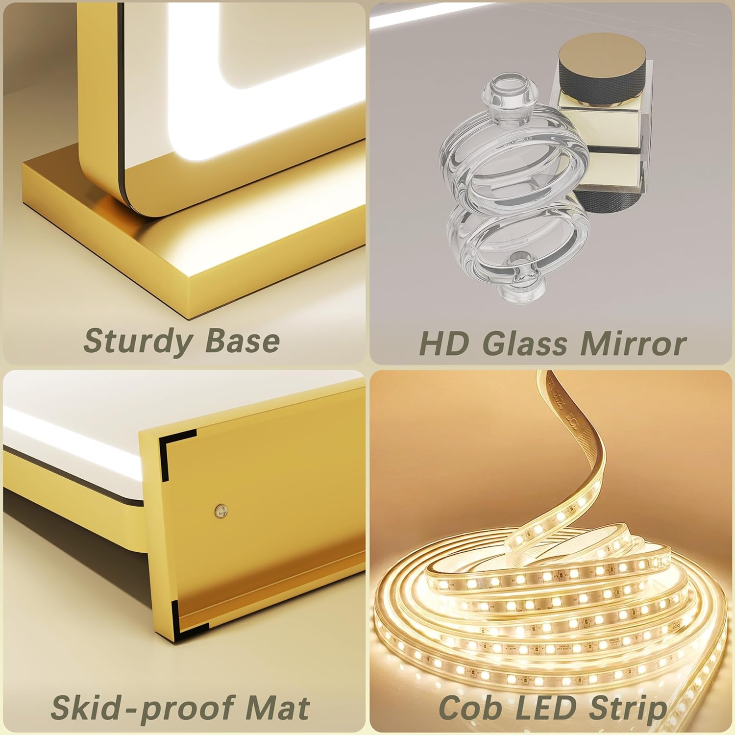 【SMART DIMMING】 This lighted makeup mirror is equipped with three different color temperature settings and adjustable brightness settings. You can choose between warm, cool, or natural light depending on your preference and the occasion. The brightness can also be adjusted to your desired level, allowing you to apply makeup or do your skincare routine with ease, regardless of the lighting conditions in your room.