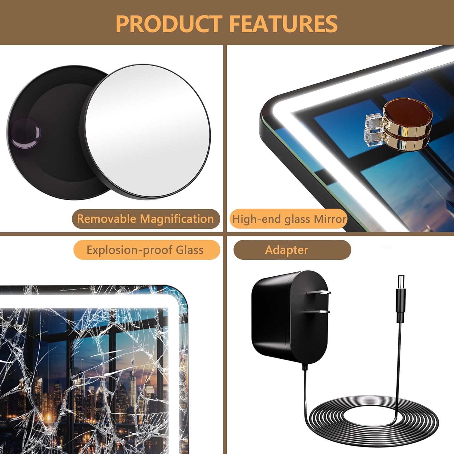 👍【Perfect Gift & Satisfaction Guarantee】This vanity mirror with lights is very suitable as a gift for girls who love beauty. Especially on birthday, Valentine’s Day, Mother’s Day, Christmas, etc.