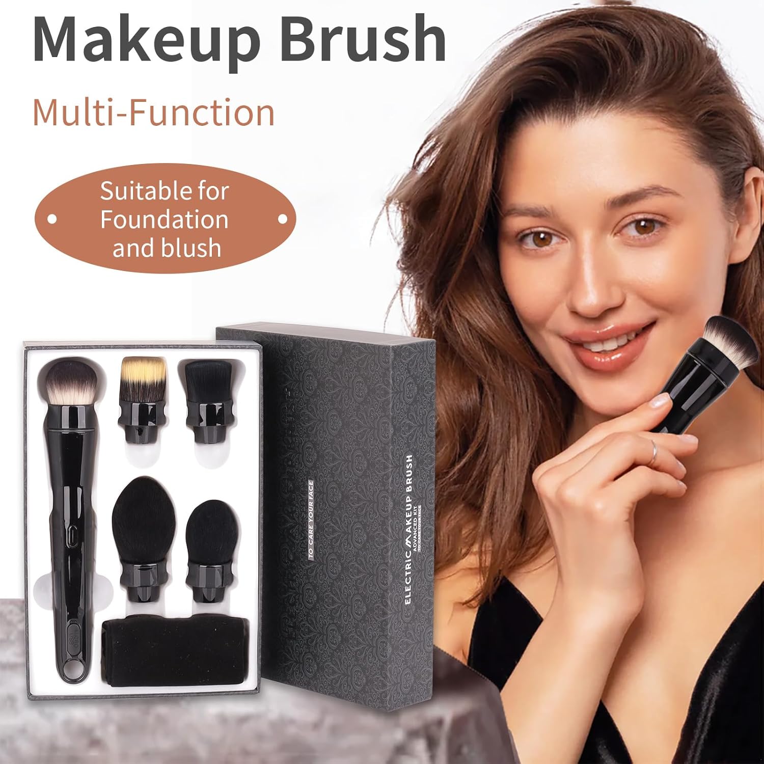 Innovative 360° Electric Rotating Makeup Brush with 5 Replaceable Brush Heads, 2 Speeds for Fast Makeup, Time-Saving, Gift for Women