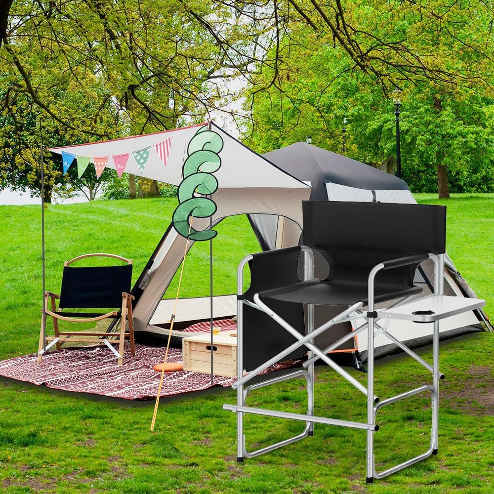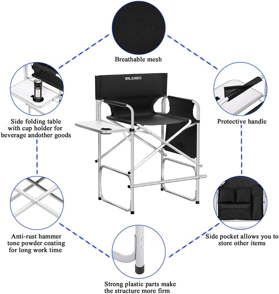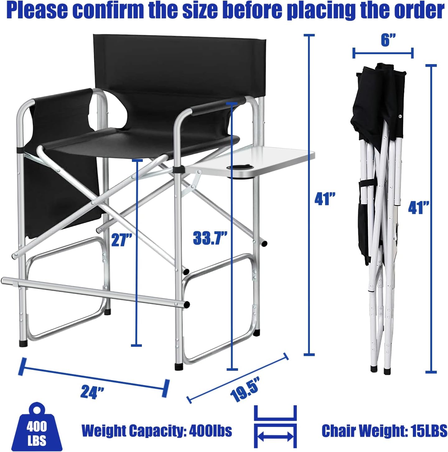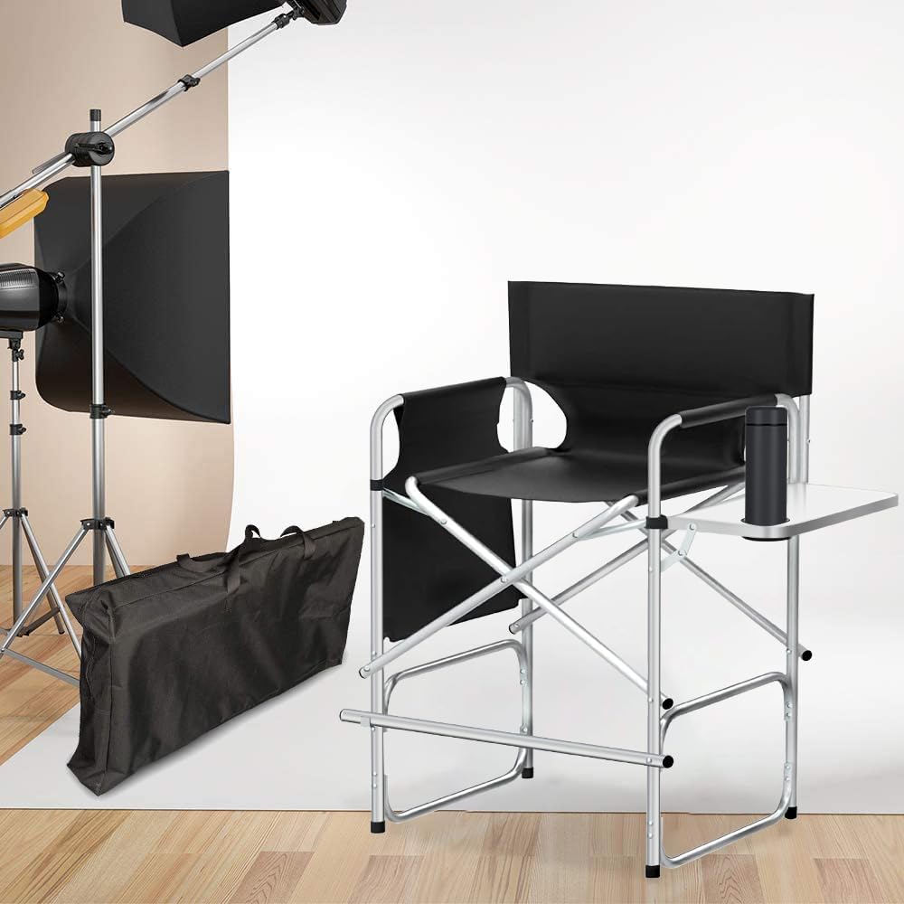 Makeup Artist Chair, 41” Foldable Tall Directors Chairs w/Side Table Cup Holder Storage Bag and Footrest, Portable Makeup Chair, 400LBS Load Capacity, Black