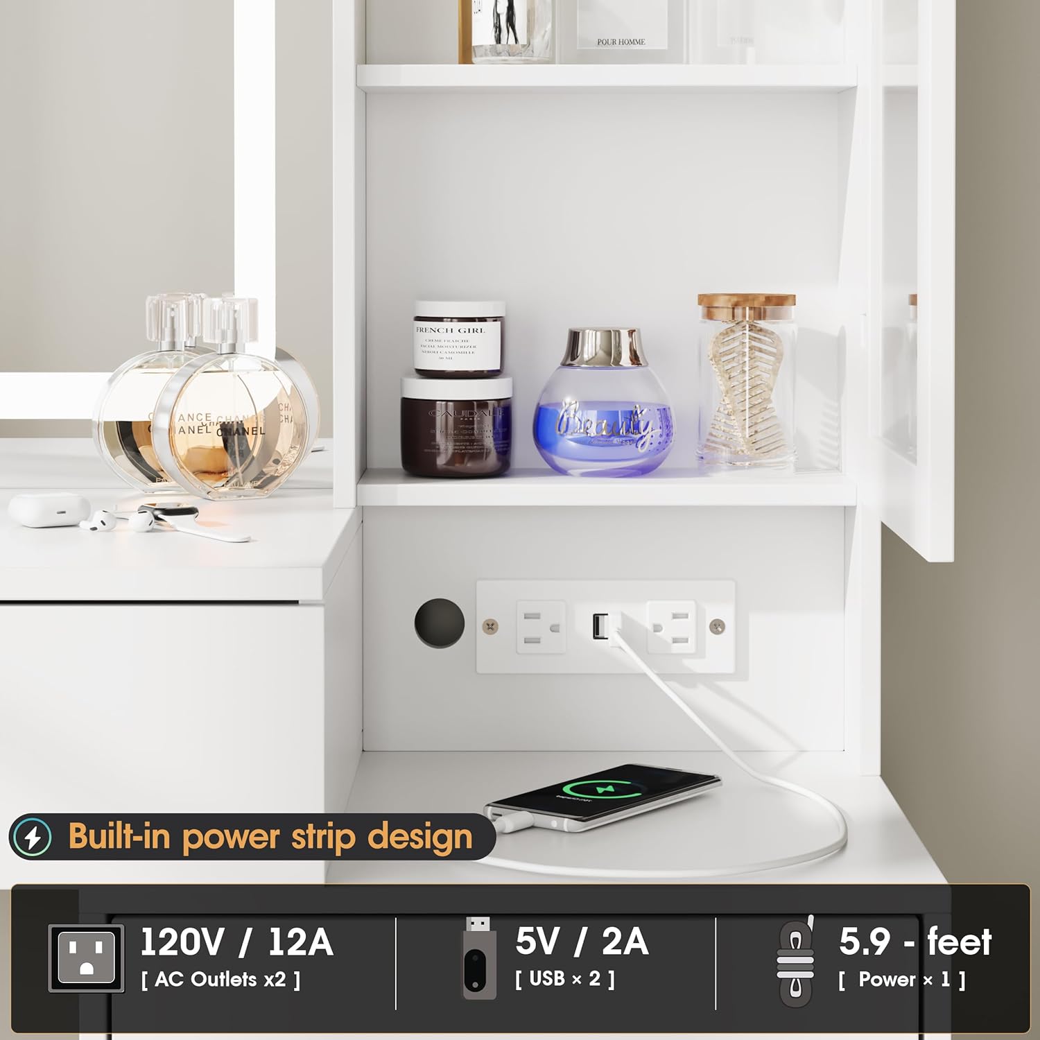 Large Vanity Desk with Charging Station, Storage Drawers & Cabinets