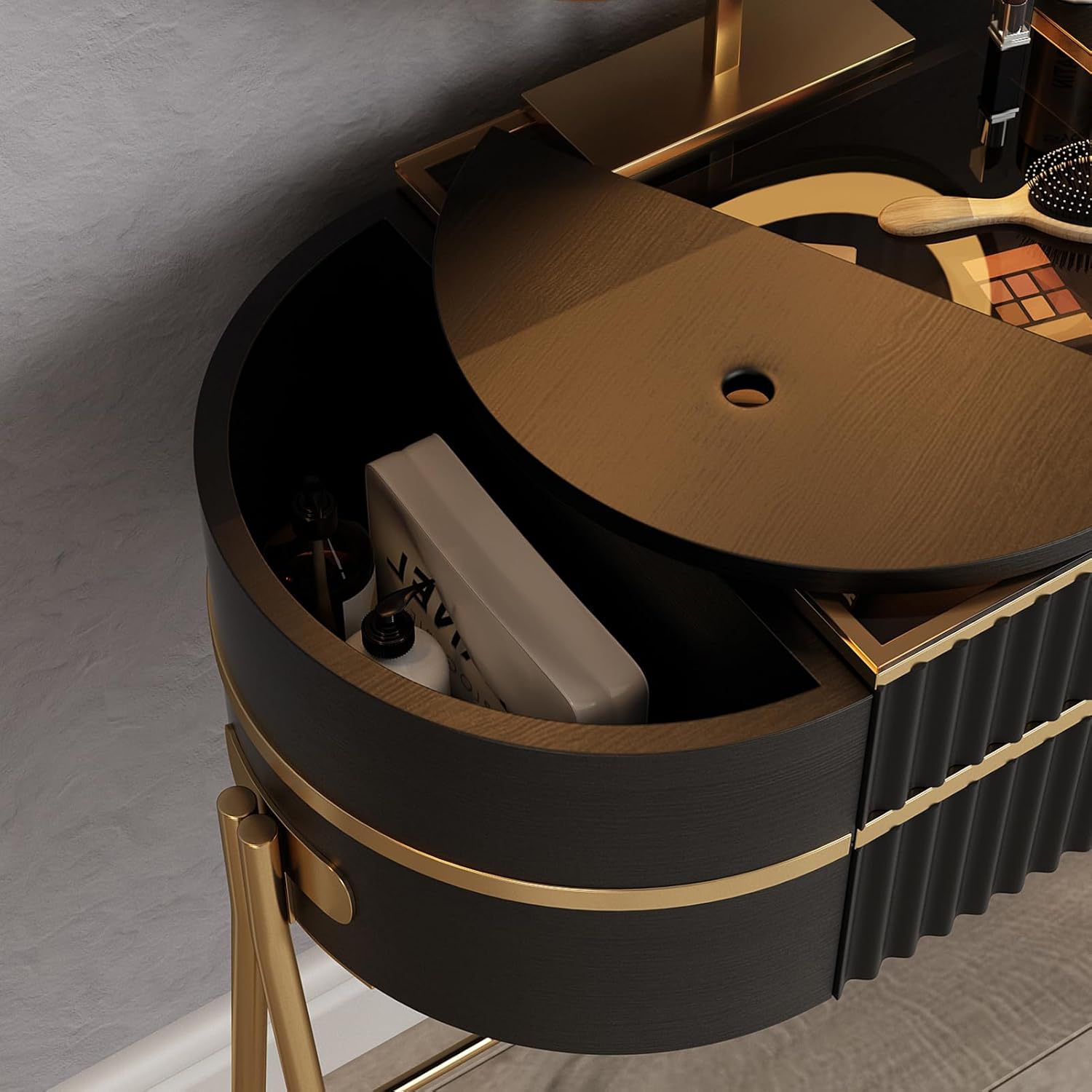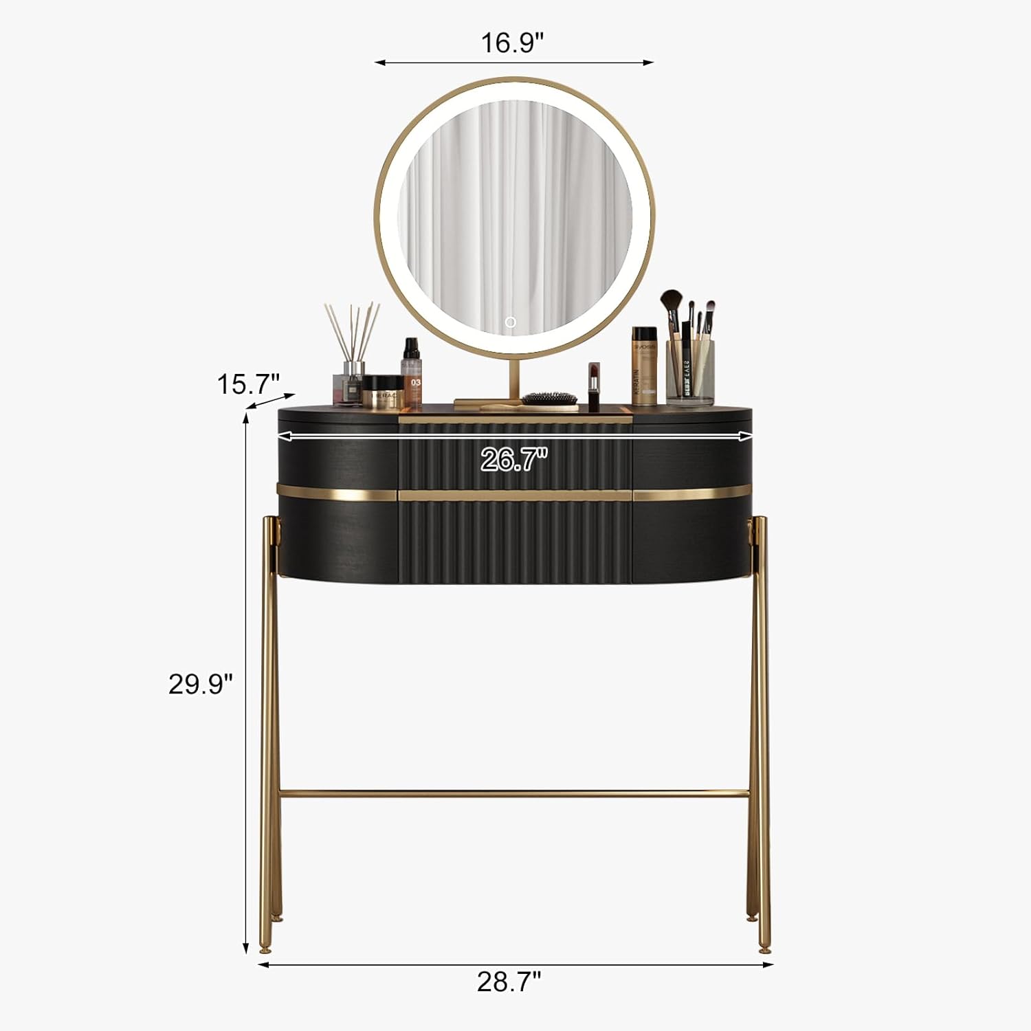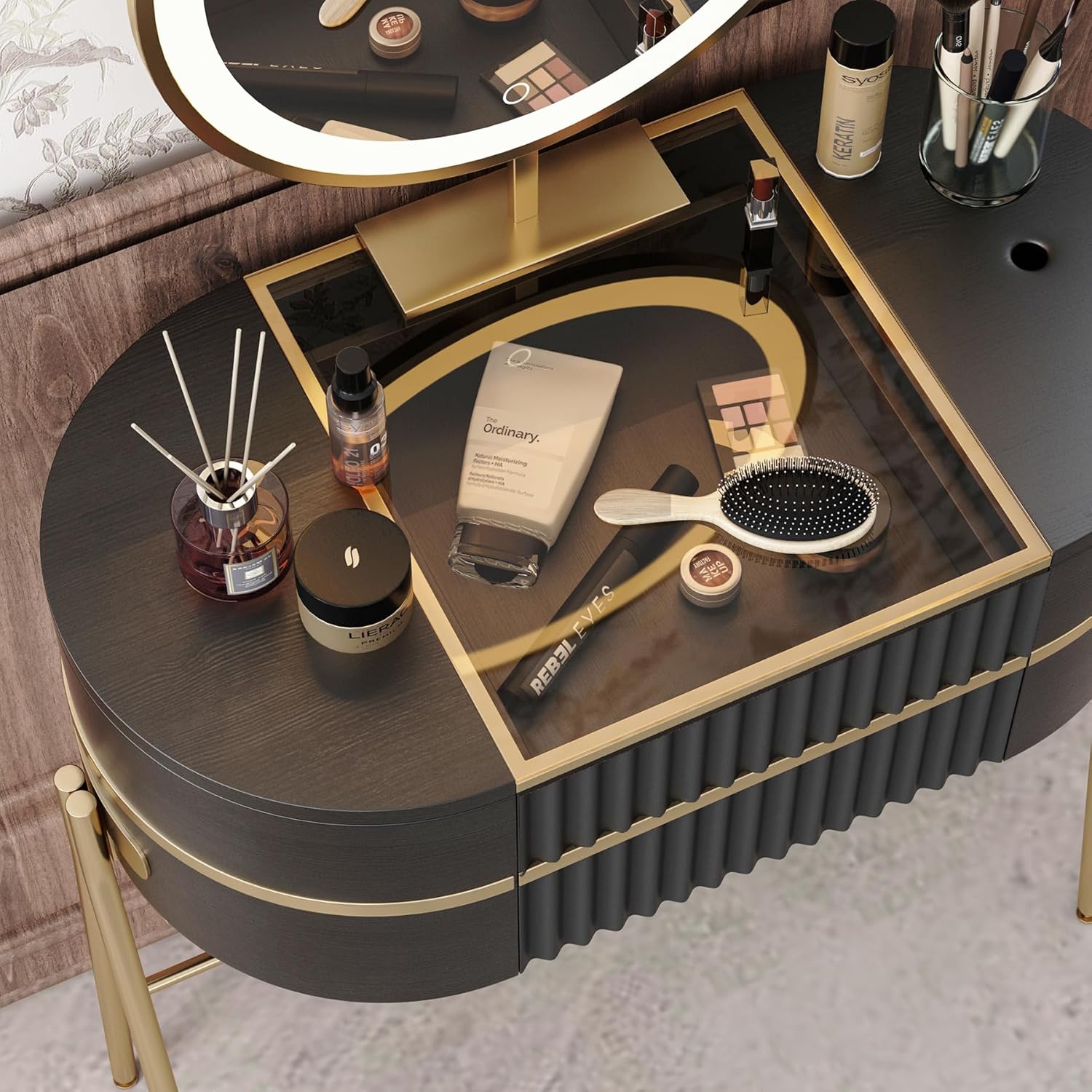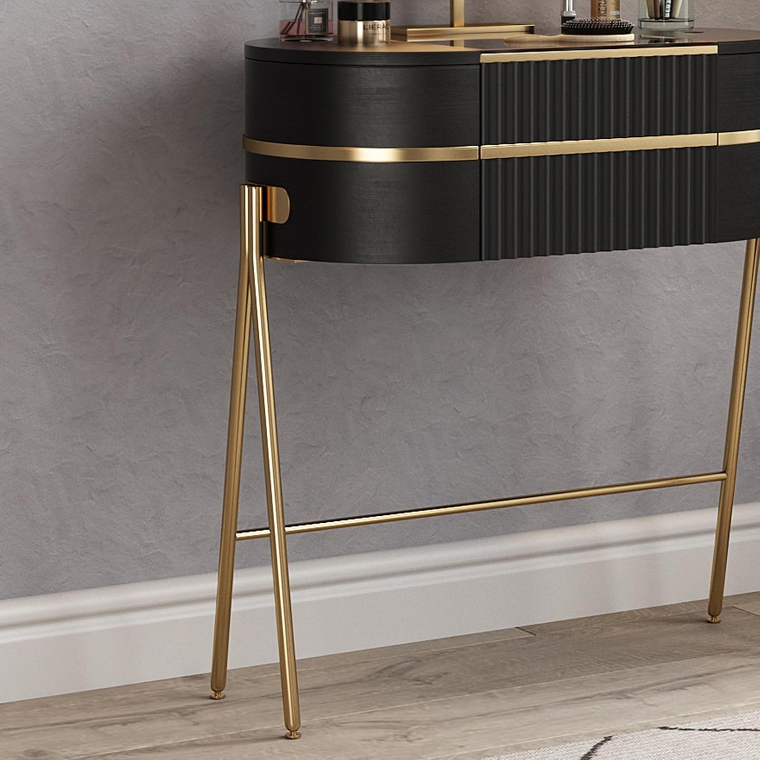 【A Gift for Your Loved One】 The elegant combination of black panels and metal creates a luxurious and fashionable style. This stunning vanity set is the perfect gift for birthdays, anniversaries, and Mother’s Day.