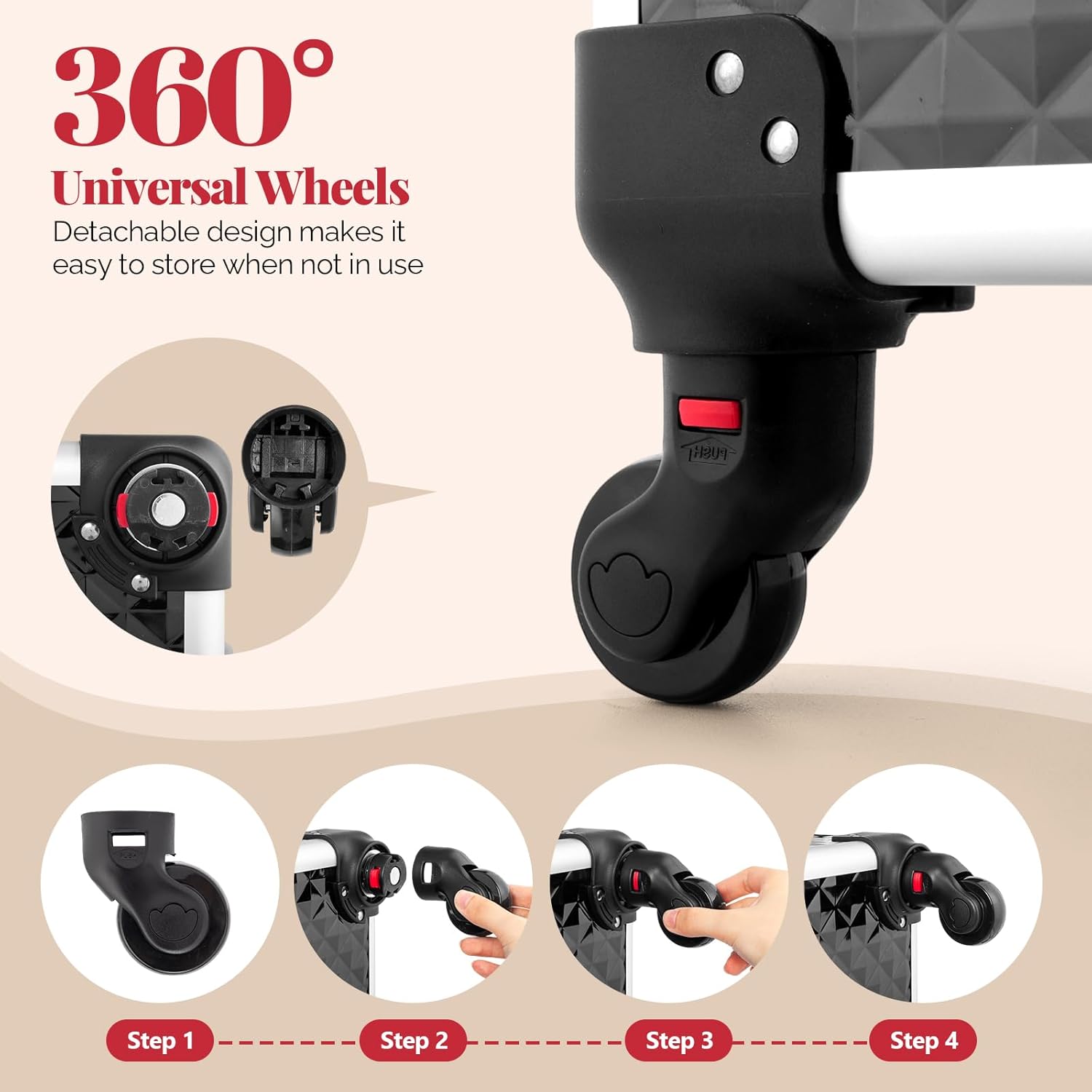 ★ADVANCED DESIGN:4pcs Durable Removable Wheels Rotate 360 Degree Easily install ,remove or replace;And note:The handle ribbon is on the top part,pls make the ribbon around the handle tightly when you travel