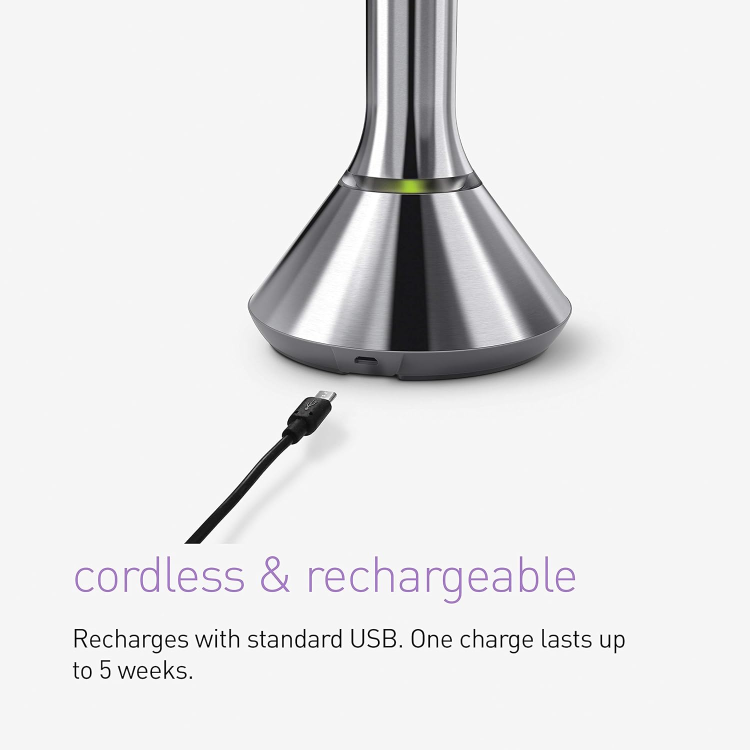 The simplehuman sensor mirror lights up automatically as your face approaches. Its tru-lux light system simulates natural sunlight, allowing you to see full color variation, so you’ll know when your makeup is color-correct and flawless. It also has a candlelight setting, so you can check your look in low light before you go. The touch-control brightness gives you fast, intuitive control over a continuous range of brightness. And unlike traditional makeup vanity mirrors’ bulb lighting, our long-lasting LEDs won’t burn out or diminish even after years of use. The mirror is cordless and rechargeable with included USB-C cord – one charge lasts up to 5 weeks. 5x magnification — ideal for providing exceptional detail while still allowing you to see your entire face at once.Warranties on purchases from 3rd party sellers are not honored.