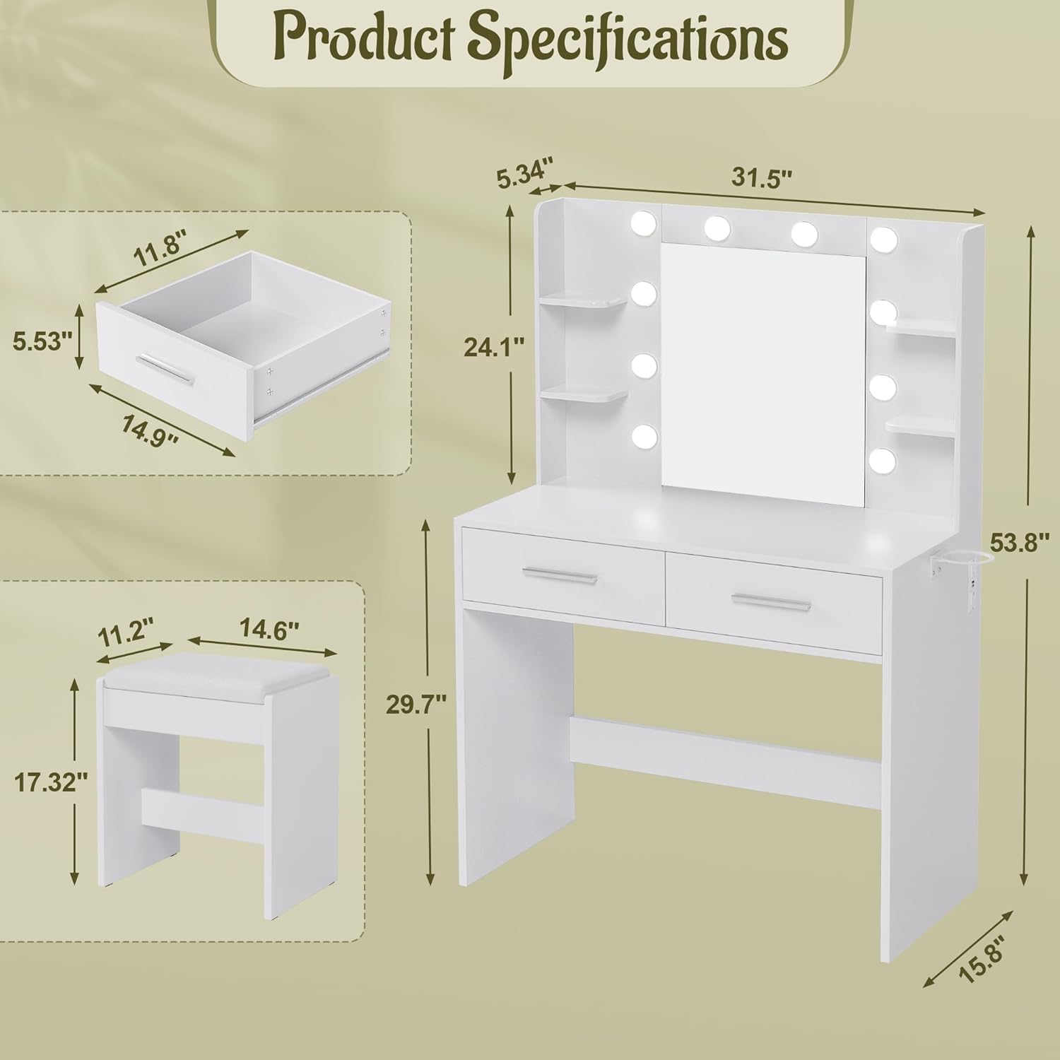🌈[Stylish and Efficient]Choosing this beauty table means embracing a beauty space that combines neatness, style and efficiency. Let the daily grooming be turned into a ritual of pampering yourself and awakening a new self.