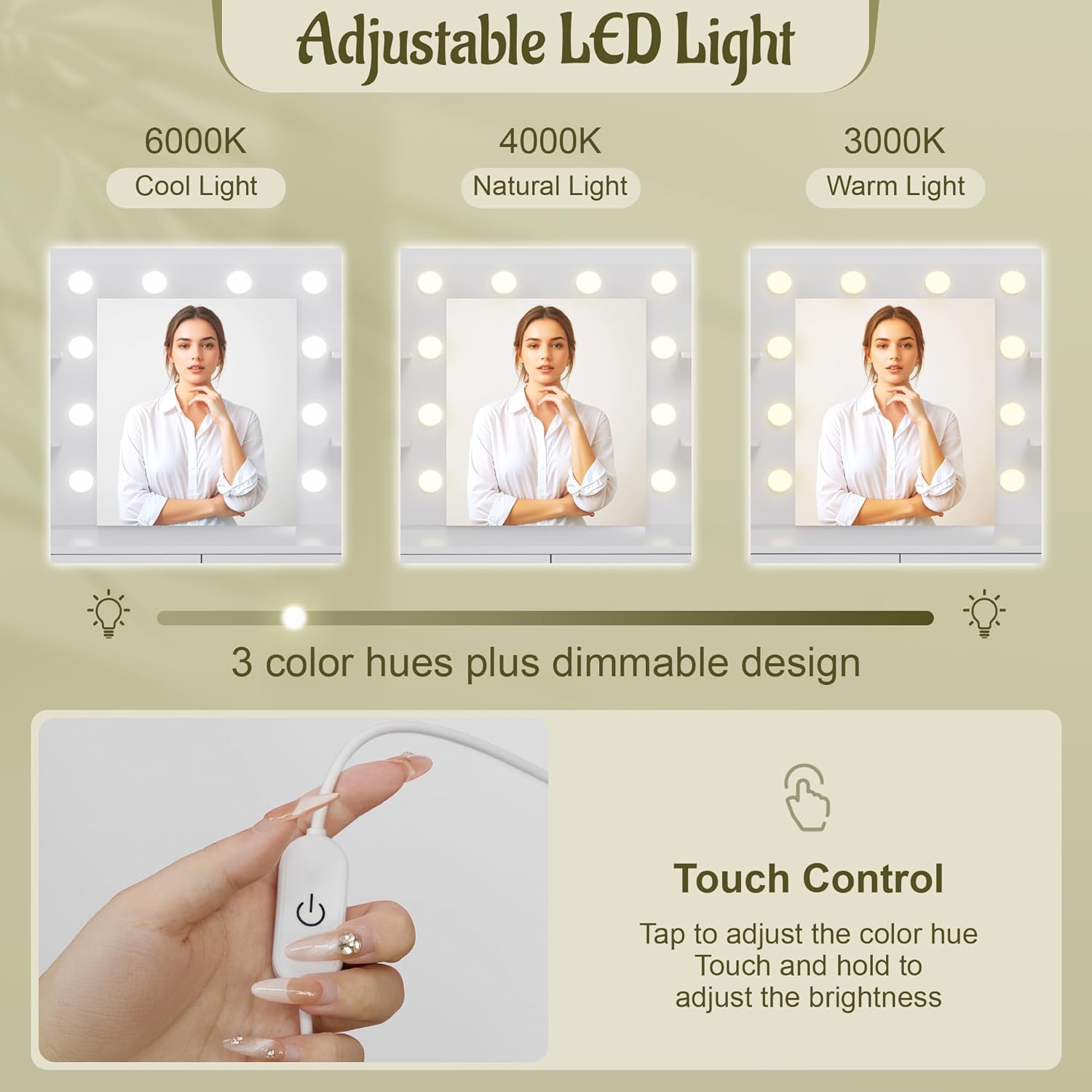 🌟[Light & Shadow Aesthetics]Mirror external soft bulb, accurately illuminates every inch of skin, natural light helps you apply makeup accurately, every gaze is a feast of self-appreciation.