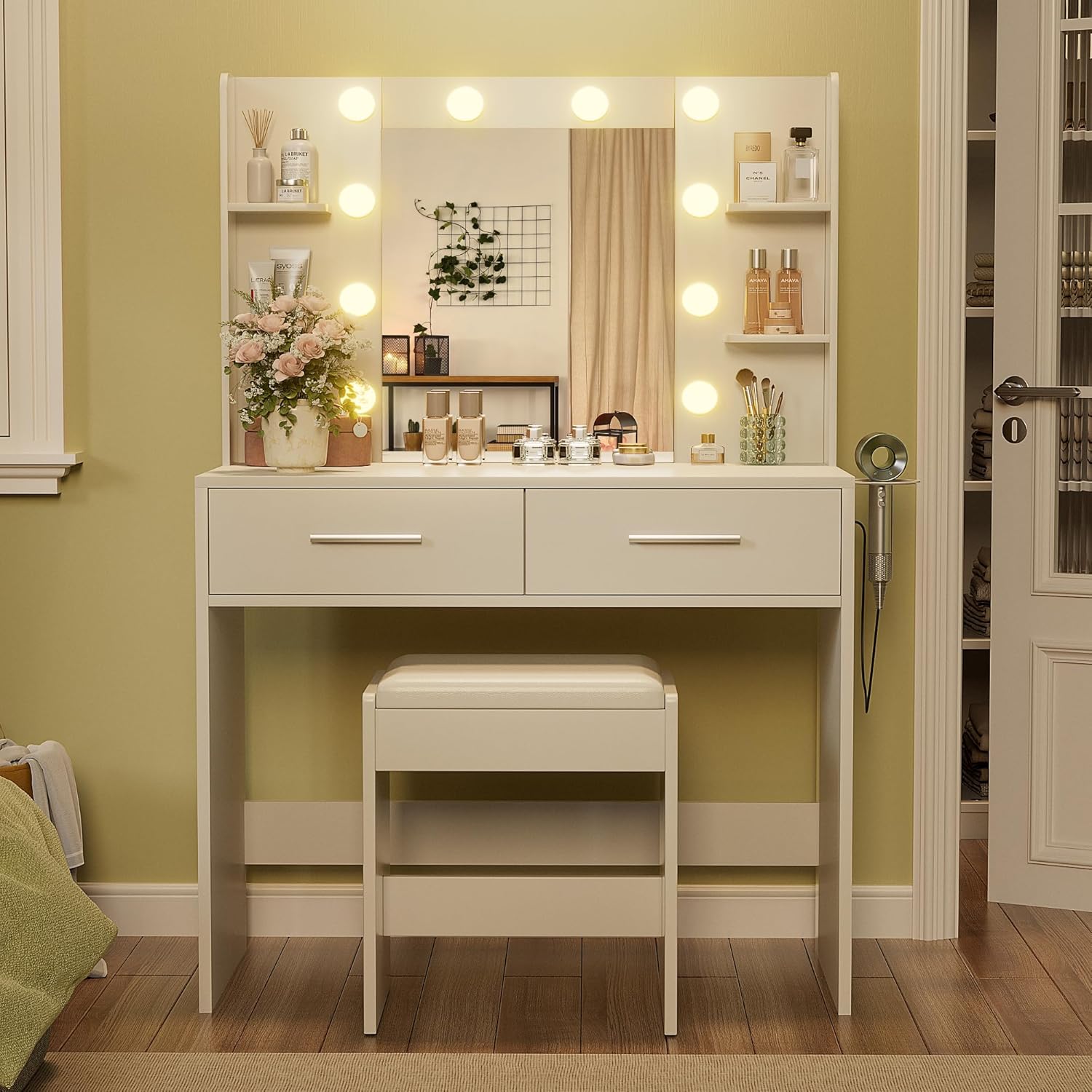 💺[Set Matching]Dresser + Comfortable Stool, a set to solve the problem of grooming, eliminating the trouble of matching, instantly enjoy the complete beauty experience, so that beauty is no longer waiting.