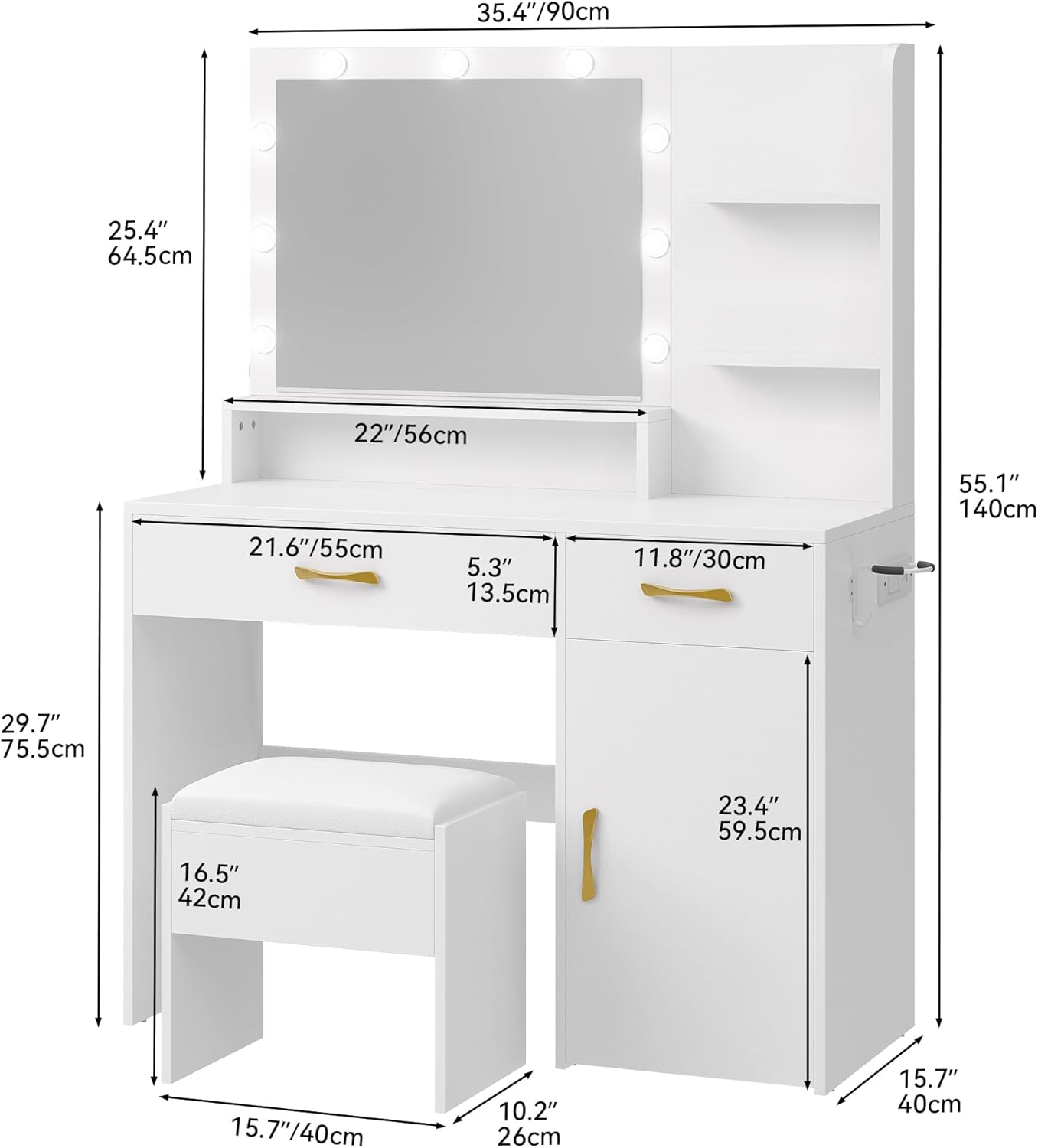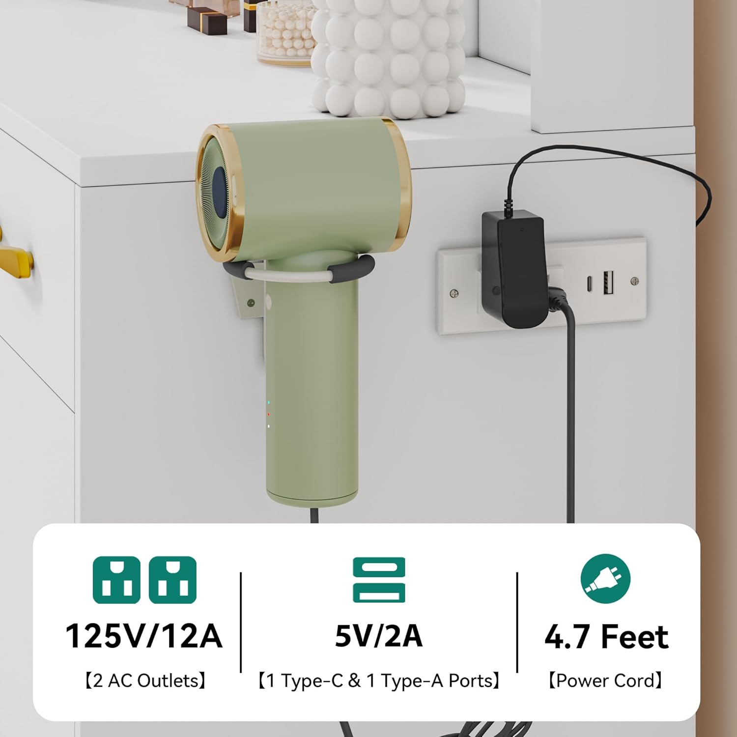 Integrated Power Station: No more crawling under your desk to plug in devices; This vanity features a built-in, FCC-certified power strip with 1 USB, 1 Type-C, and 2 AC outlets, keeping all your styling tools and gadgets conveniently within arm’s reach