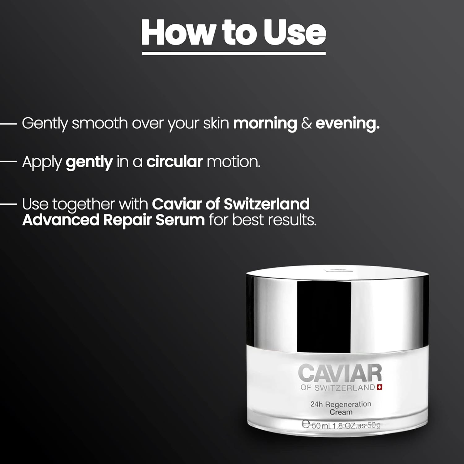 ✅{𝐂𝐮𝐬𝐭𝐨𝐦𝐞𝐫 𝐒𝐚𝐭𝐢𝐬𝐟𝐚𝐜𝐭𝐢𝐨𝐧}: 24h regeneration Cream by Caviar of Switzerland is an anti-aging wrinkle cream for the face. In case of any query related to the product, please do contact us. We will always be at your service.