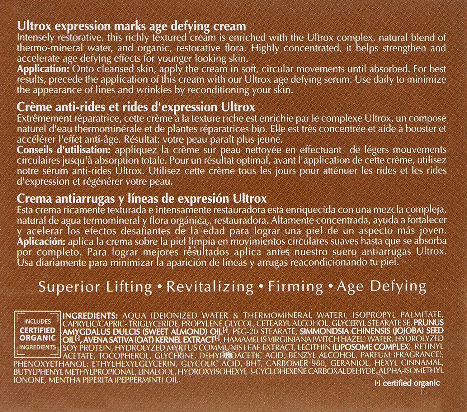 Intensely restorative and enriched with Ultrox complex, a blend of thermo-mineral water and organic, restorative flora