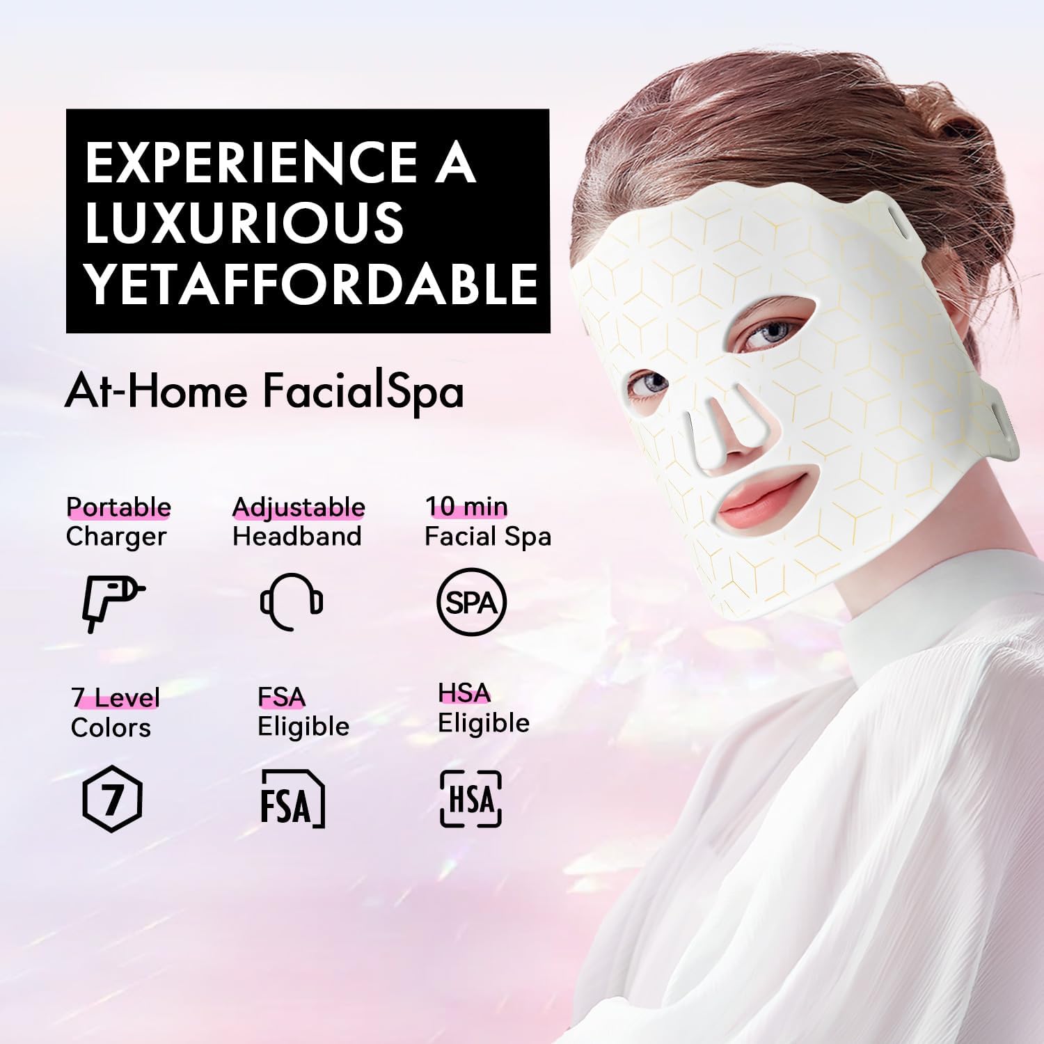 LED Facial Mask Red Light Therapy Mask FSA/HSA Eligible 7 Colors Facial Skin Care Mask for Acne Reduction Skin Rejuvenation Anti-Aging Wrinkle Acne