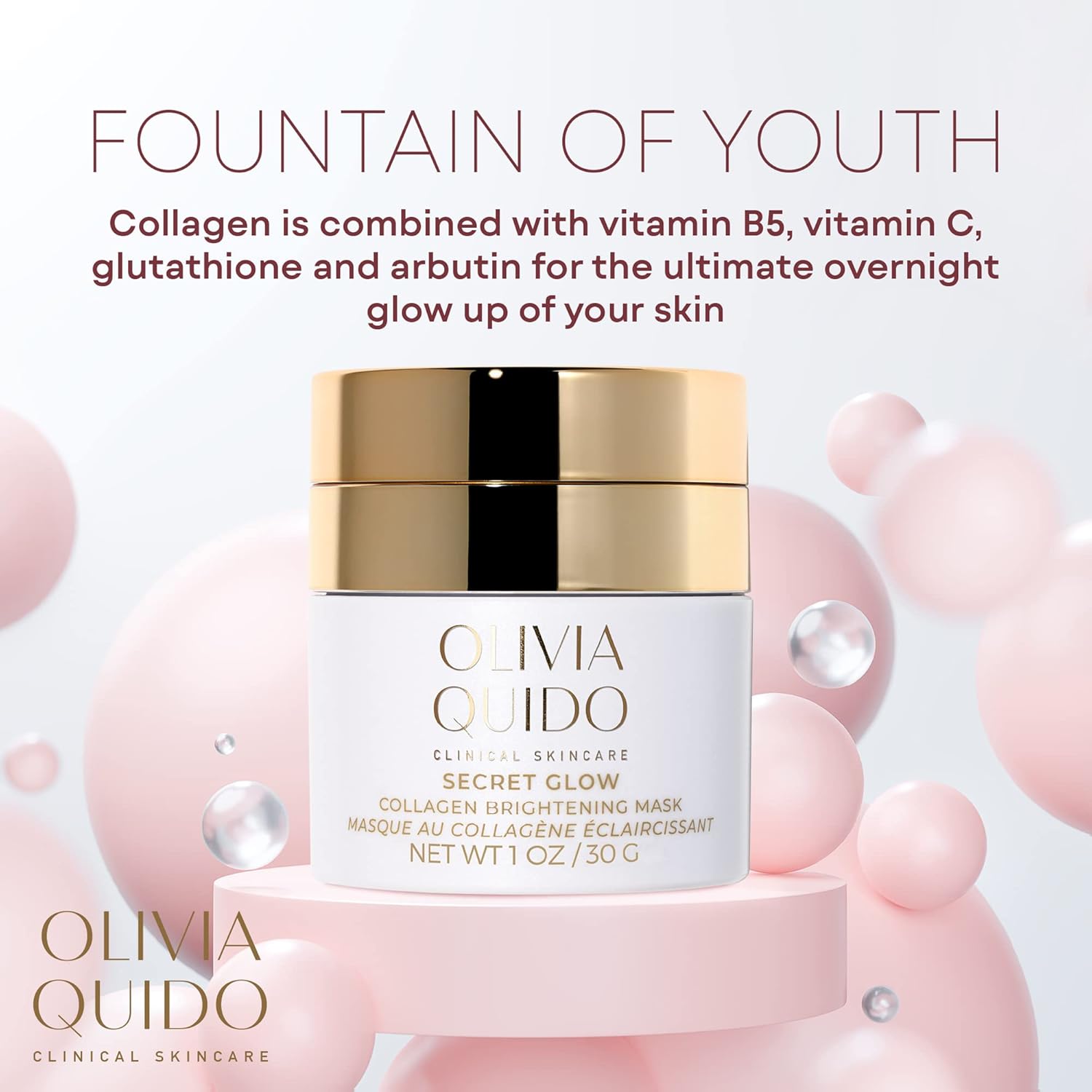 OLIVIA QUIDO Clinical Skin Care Secret Glow |Anti-Aging Collagen White Mask | Brightening Night Cream for Face and Neck| Intense Brightening Glutathione Formula Smoothens For Dewy & Glowing Complexion