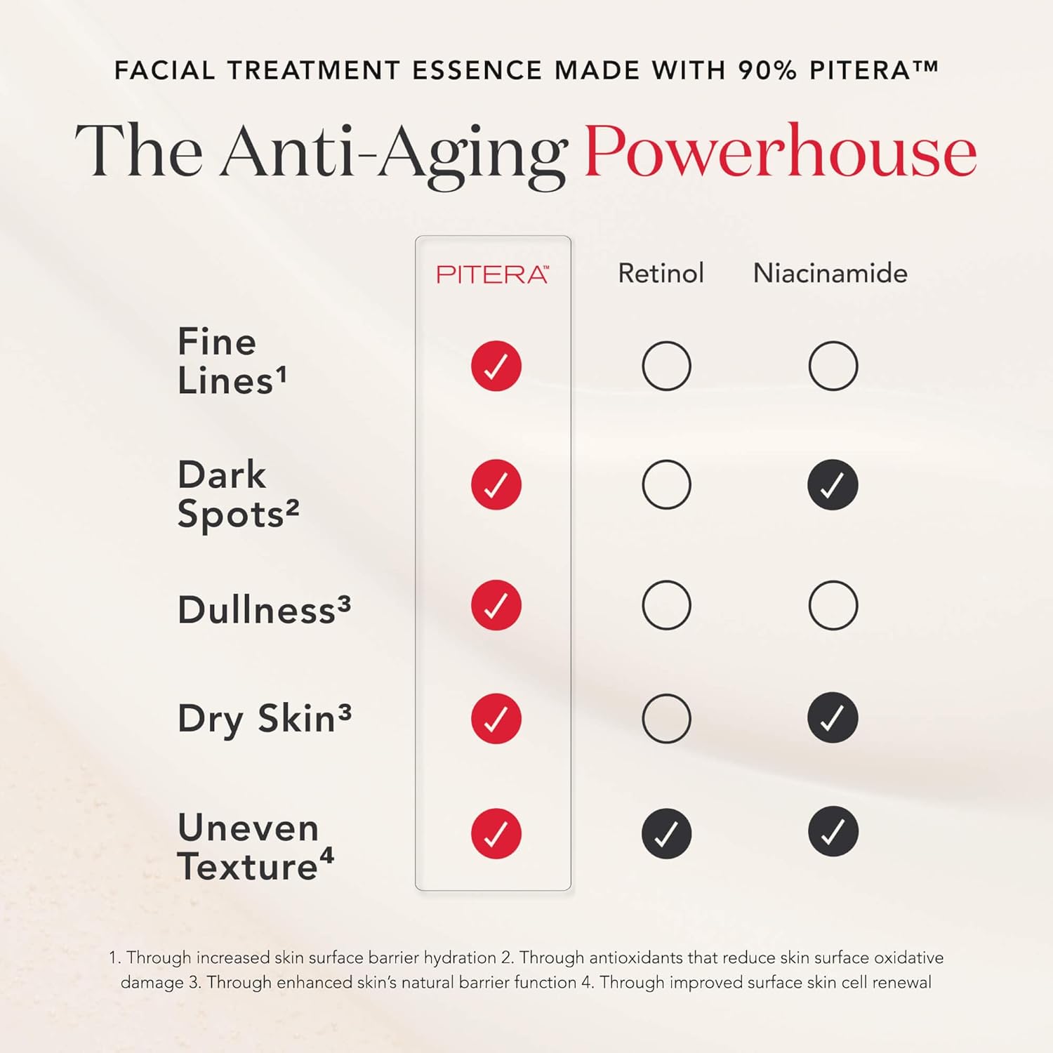 Facial Treatment Essence – Containing over 90% PITERA, our proprietary, natural bio-ingredient derived from fermentation, this anti aging essence rivals the benefits of retinol, Vitamin C and hyaluronic acid, while addressing visible signs of aging and skin damage in just one step.