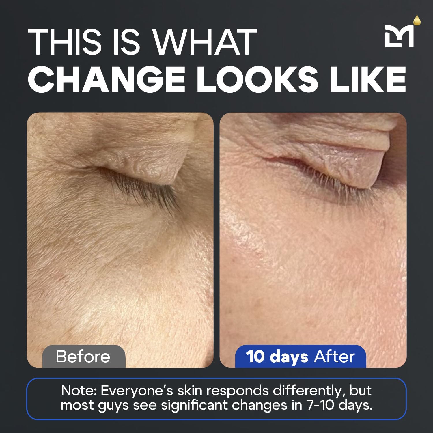 You’ll Notice a Difference Within Days: After 7-10 days with this peptide anti-aging serum, many guys see improvements in skin firmness and texture, with stubborn lines starting to soften around the eyes and forehead; Keep in mind that anti-aging for men’s skin care results can vary based on your age, skin, and lifestyle